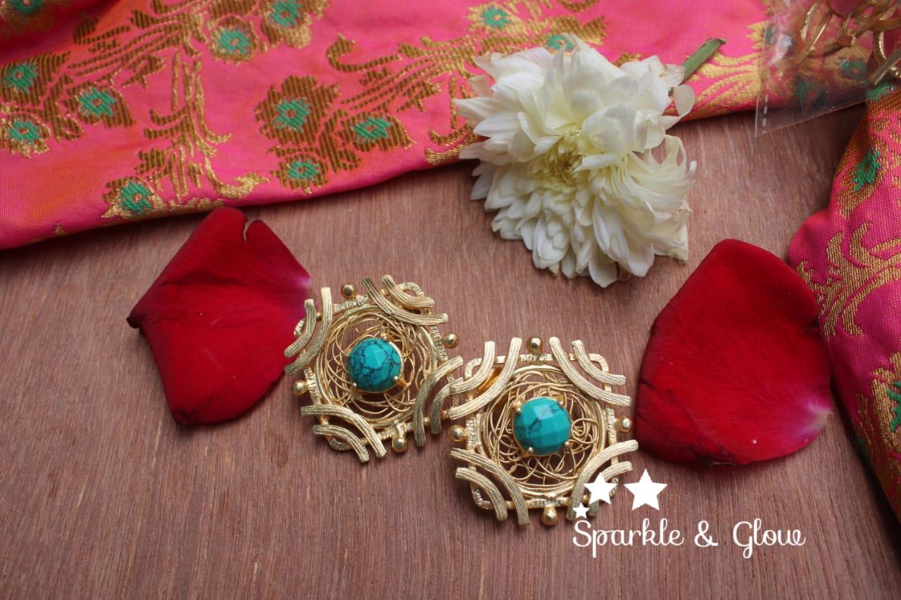 22k Gold Turquoise Party Studs | Daily Wear