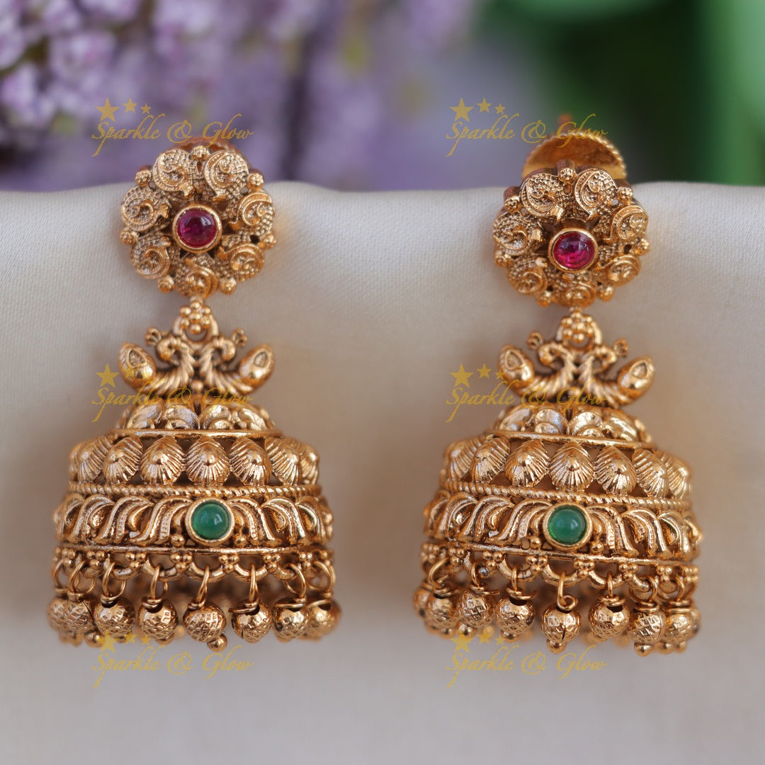 Meta Description: Shop Sparkle & Glow's Elegant Floral Gold Jhumka Earrings, perfect for weddings and festive occasions. Explore more with our temple jewellery collection.