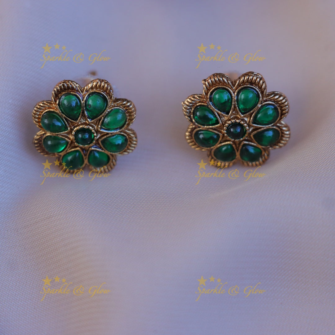 Whether it's a wedding, festive celebration, or any special occasion, this necklace set is tailored to complement your Indian ethnic wear. Each piece is crafted with precision, featuring stunning gold plating that enhances its opulent appeal. The floral motifs are embedded with high-quality stones that shimmer beautifully, capturing the light from every angle.