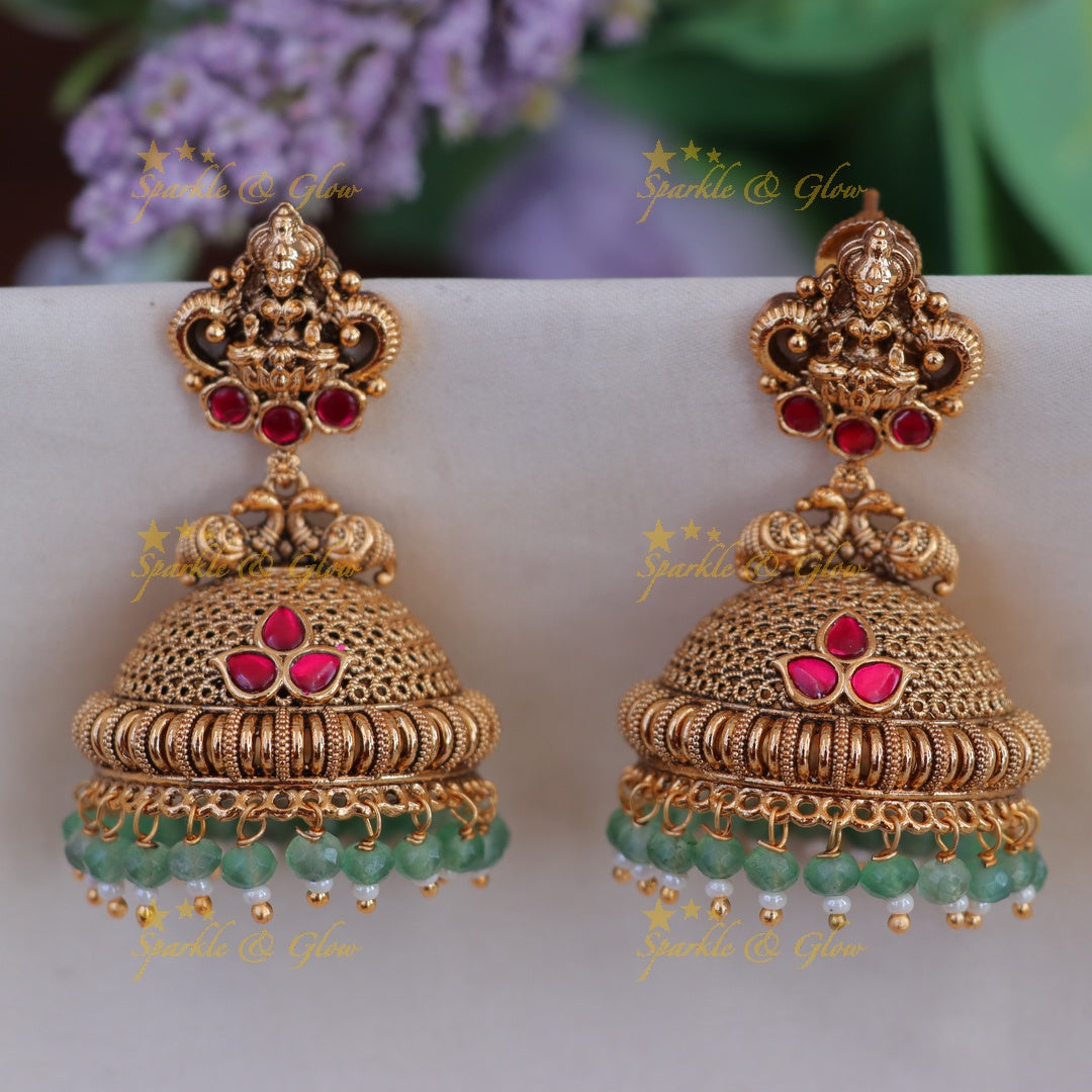 Meta Description: Discover our elegant Lakshmi Peacock Jhumka Earrings, perfect for weddings and festive occasions. Shop traditional temple style online now.