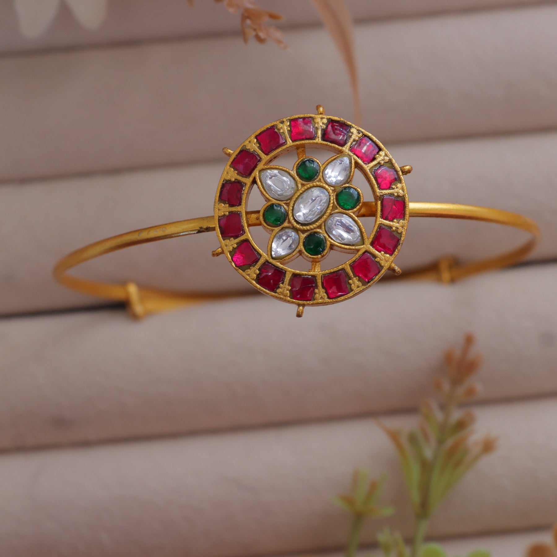 Meta Description: Discover the elegant Round Floral Jadau Bangle, perfect for weddings and festivals. Crafted for a premium look, this bangle adds a regal touch to any outfit.