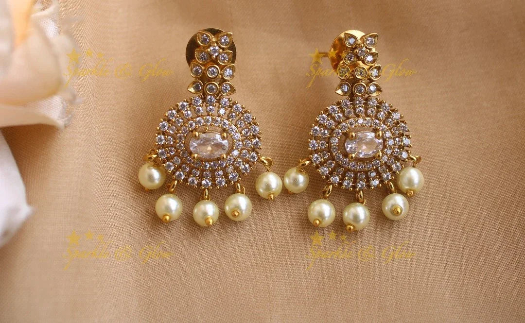 The necklace's centerpiece is adorned with sparkling motifs, capturing the essence of traditional Indian craftsmanship. The harmonious blend of white pearls and gold hues makes it a versatile accessory, ideal for pairing with a variety of ensembles.