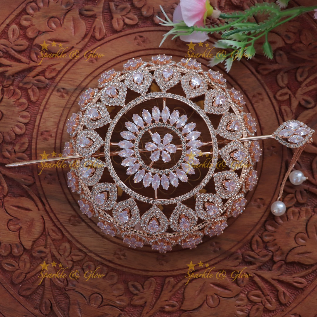 We pride ourselves on offering premium imitation jewellery that captivates and enchants. This Gold Bridal Hair Bun is a reflection of our dedication to bringing you the best in design and quality.