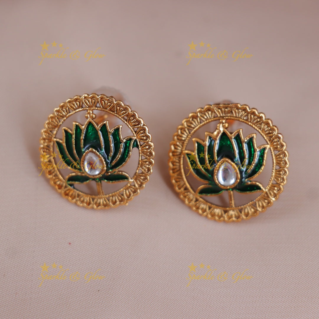 Discover the exquisite beauty of our Lotus Gold Necklace Set, a masterpiece of traditional Indian craftsmanship. Designed to be the centerpiece of any festive attire, this necklace is an embodiment of elegance and cultural heritage. The necklace, adorned with intricate lotus motifs, symbolizes purity and spiritual awakening, making it perfect for auspicious occasions.