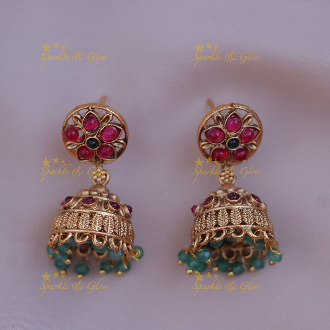 Experience the exceptional allure of the Gold Mint Green Bead Floral Necklace Set, a masterpiece that encapsulates elegance and timeless beauty. This intricately designed set features a striking combination of gold tones with refreshing mint green beads, making it a perfect accessory for any festive or wedding occasion.