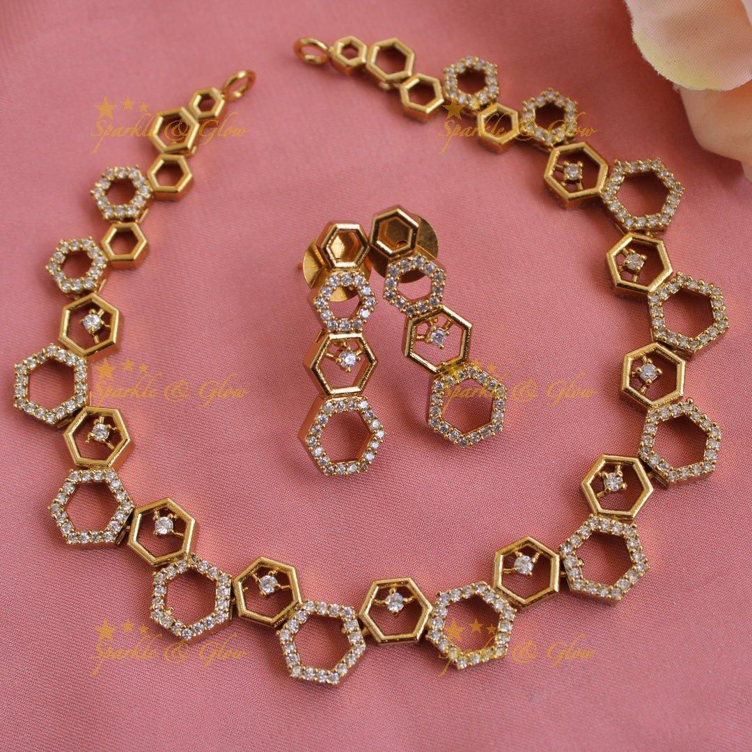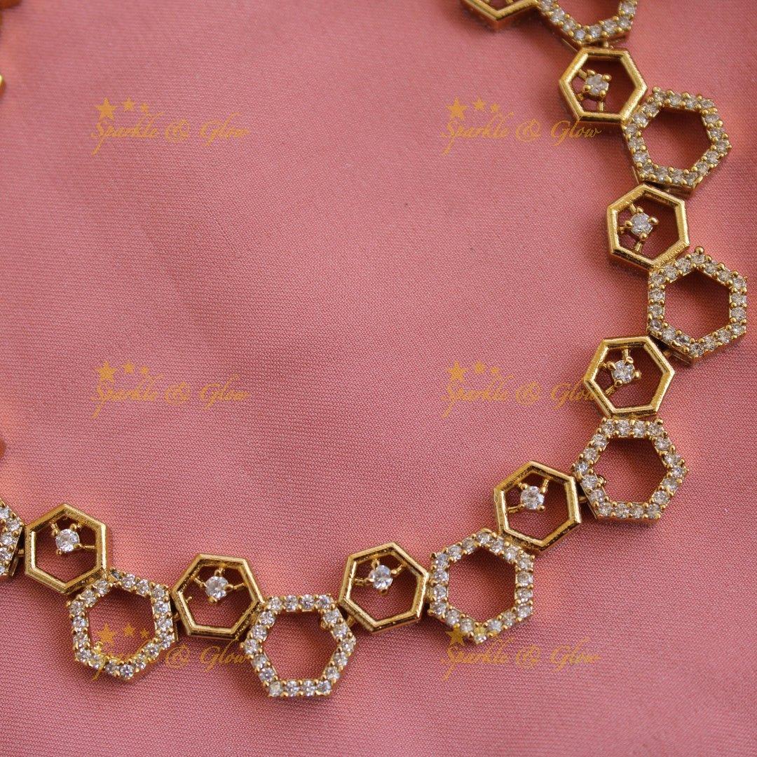 Hexagon AD Short Necklace | Elegant Design