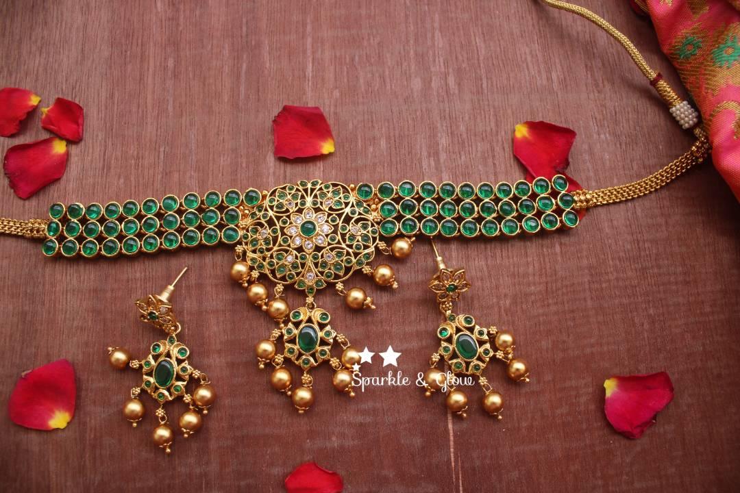 The choker is beautifully crafted with delicate motifs and dangling beads, offering a unique non-idol aesthetic that stands out in any collection. Its high-neck design ensures a regal fit, bringing a touch of opulence to your ensemble.