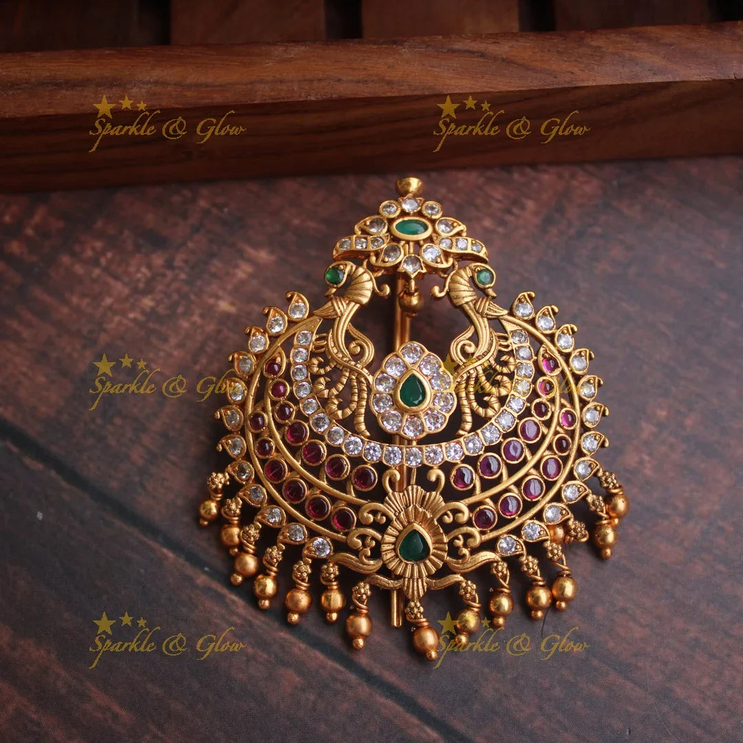 The antique gold finish adds a touch of vintage charm, making it a perfect accessory for weddings and festive occasions. This hair clip seamlessly blends tradition with elegance, ensuring you stand out in any crowd.