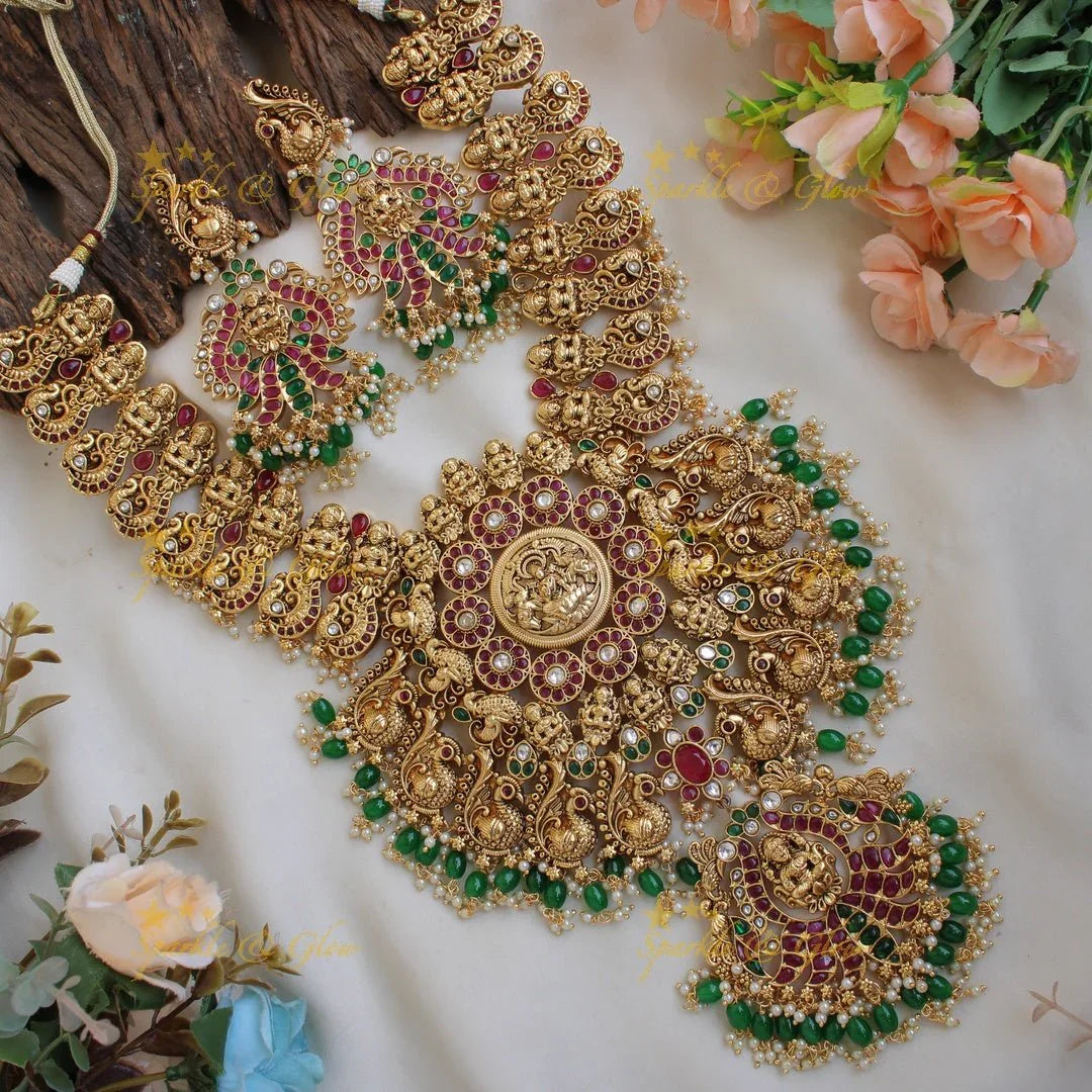 Lakshmi Peacock Kemp Stone Bridal Long Necklace