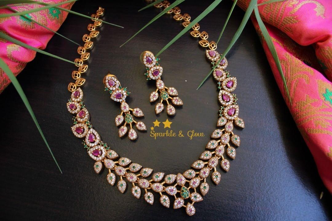 The vivid hues of the embedded stones reflect a spectrum of colors, enhancing the necklace's allure. Each leaflet is carefully crafted to capture the light, offering a dazzling display that captivates and enchants. Whether paired with traditional attire or modern ensembles, this necklace promises to be a stunning focal point.