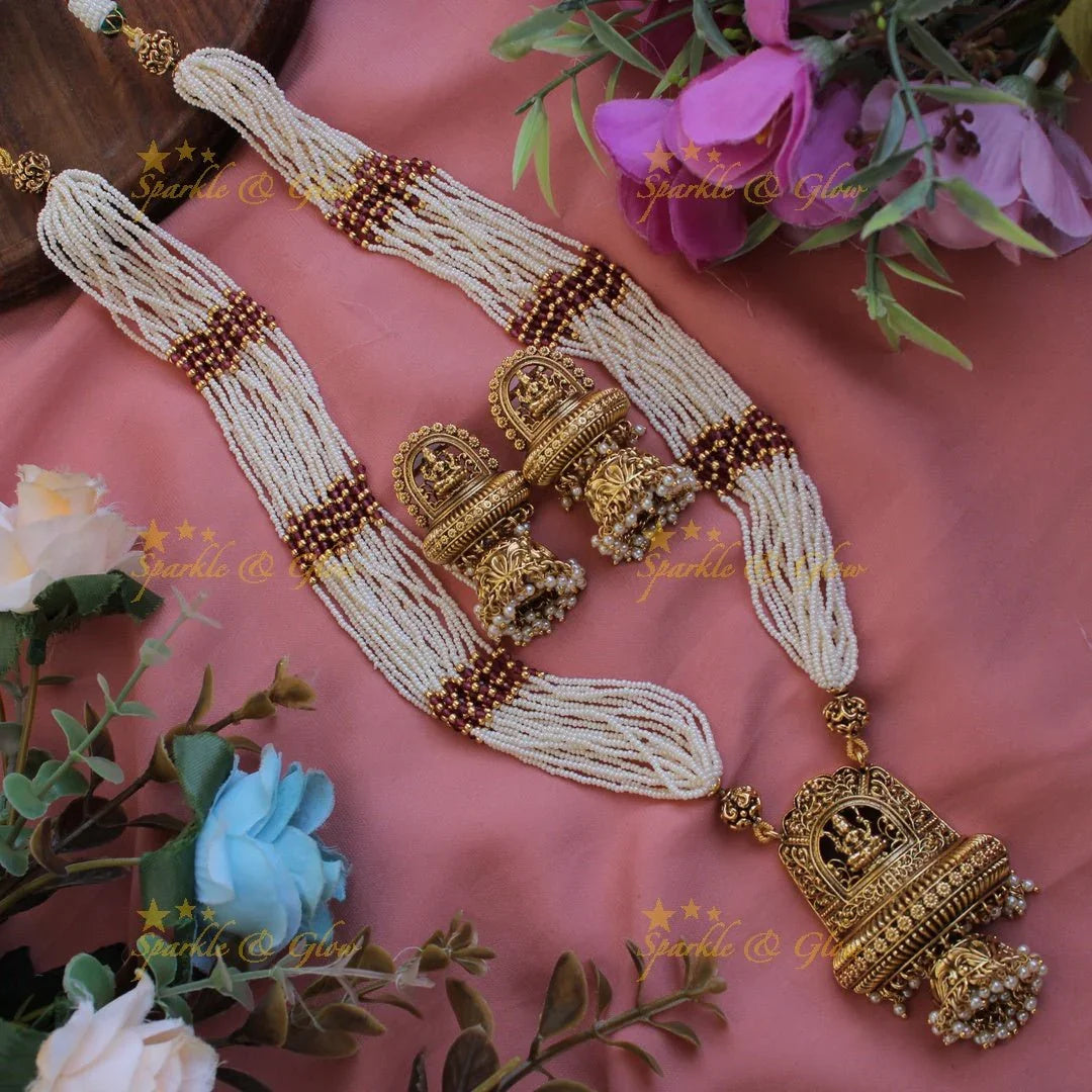 Multi-Layer Pearl Lakshmi Pendant Haram Necklace