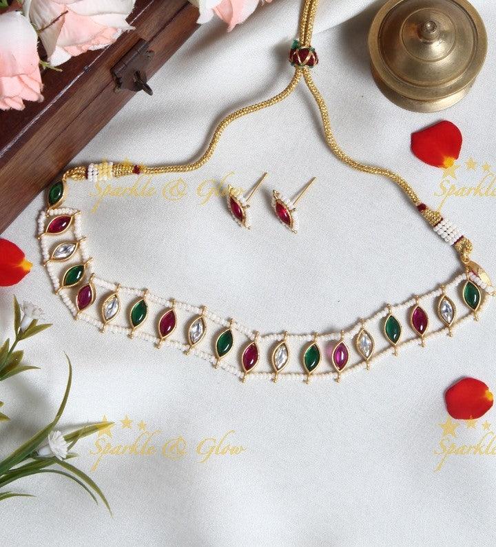 Perfect for festive occasions and weddings, this statement piece enhances your neckline with its intricate craftsmanship. The choker radiates a regal charm, making it a must-have accessory for any celebration.