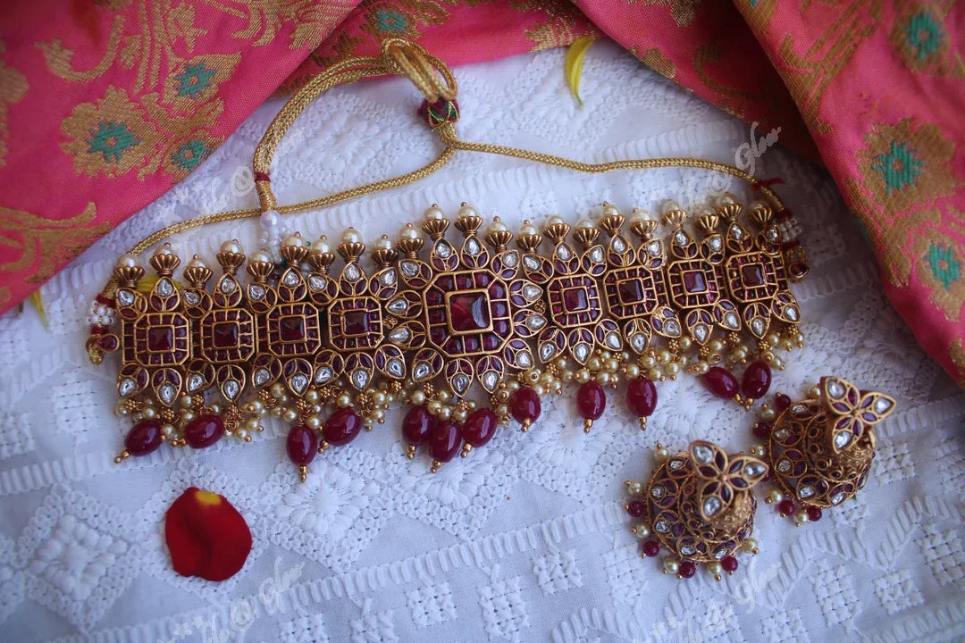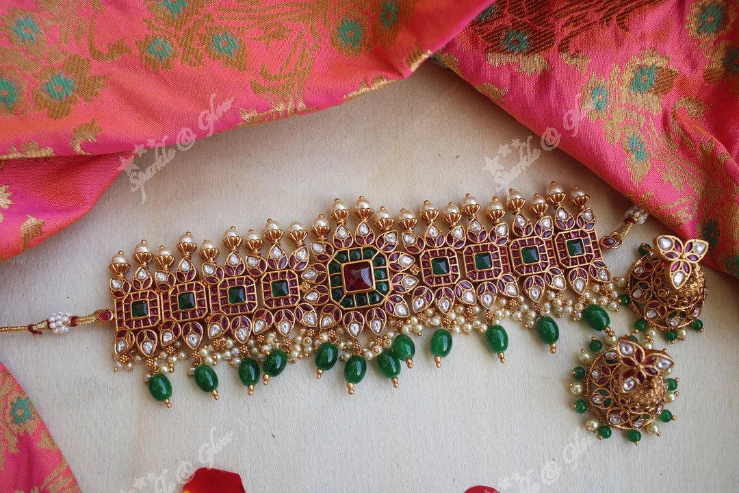 Pair this stunning choker with traditional attire for a captivating look. Each element is crafted with precision, reflecting the timeless beauty of Indian jewellery.