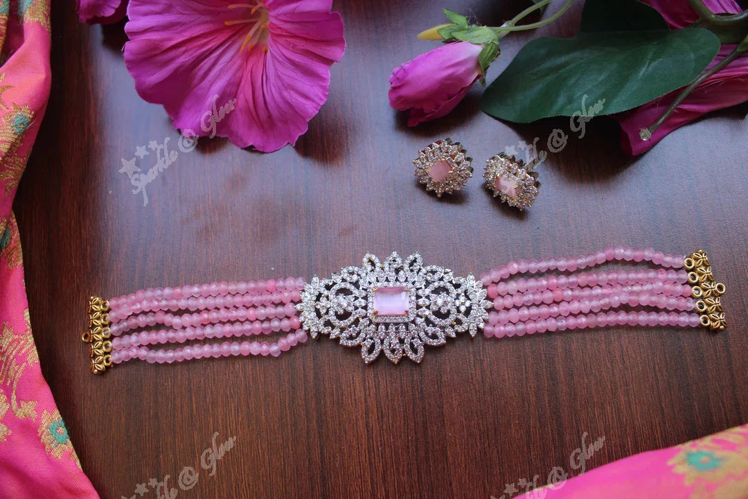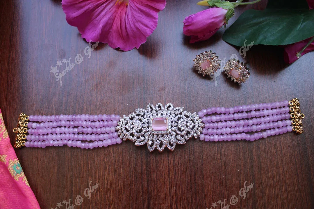 Embrace the elegance of tradition with our Sky Blue AD Stone Gold Polished Choker Necklace. This exquisite piece features lustrous white AD stones set against a rich gold polish that exudes sophistication. The sky blue beads add a pop of color, creating a stunning contrast that captures attention and reflects festive joy.