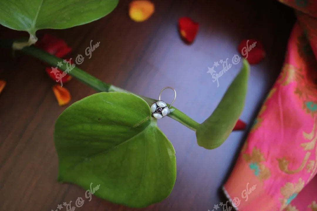 Embrace elegance with our Sterling Silver Pink Gem L-Shaped Nose Stud, a stunning piece perfect for festive and wedding occasions. This exquisite nose pin features a delicate silver finish, accentuated by a radiant pink semi-precious stone, embodying grace and sophistication.