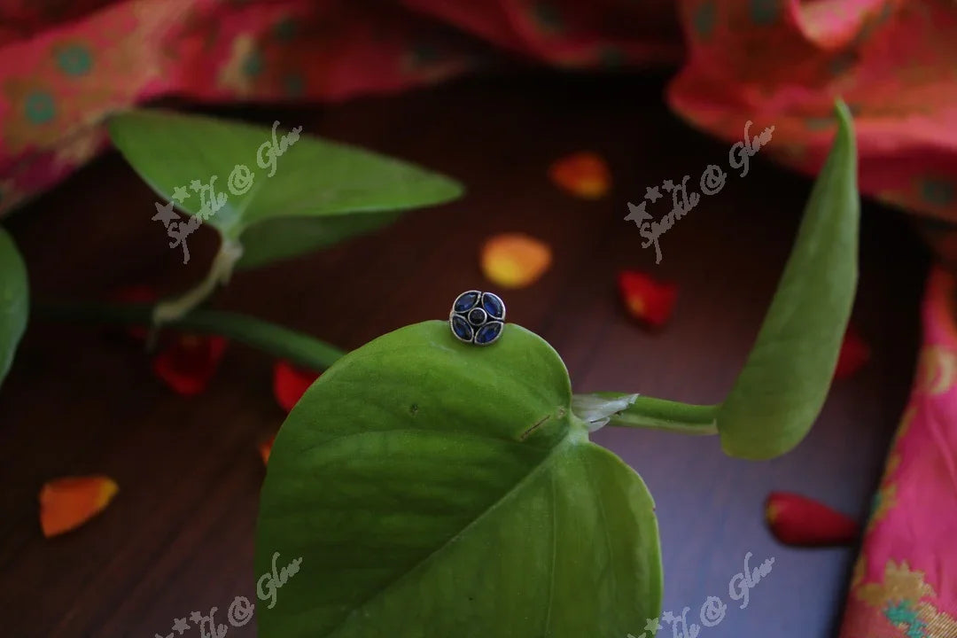 The design showcases intricate floral motifs that add a touch of charm and cultural richness. The gentle shimmer of the silver beautifully complements the vibrant hue of the pink gem, making it a versatile accessory for any attire.