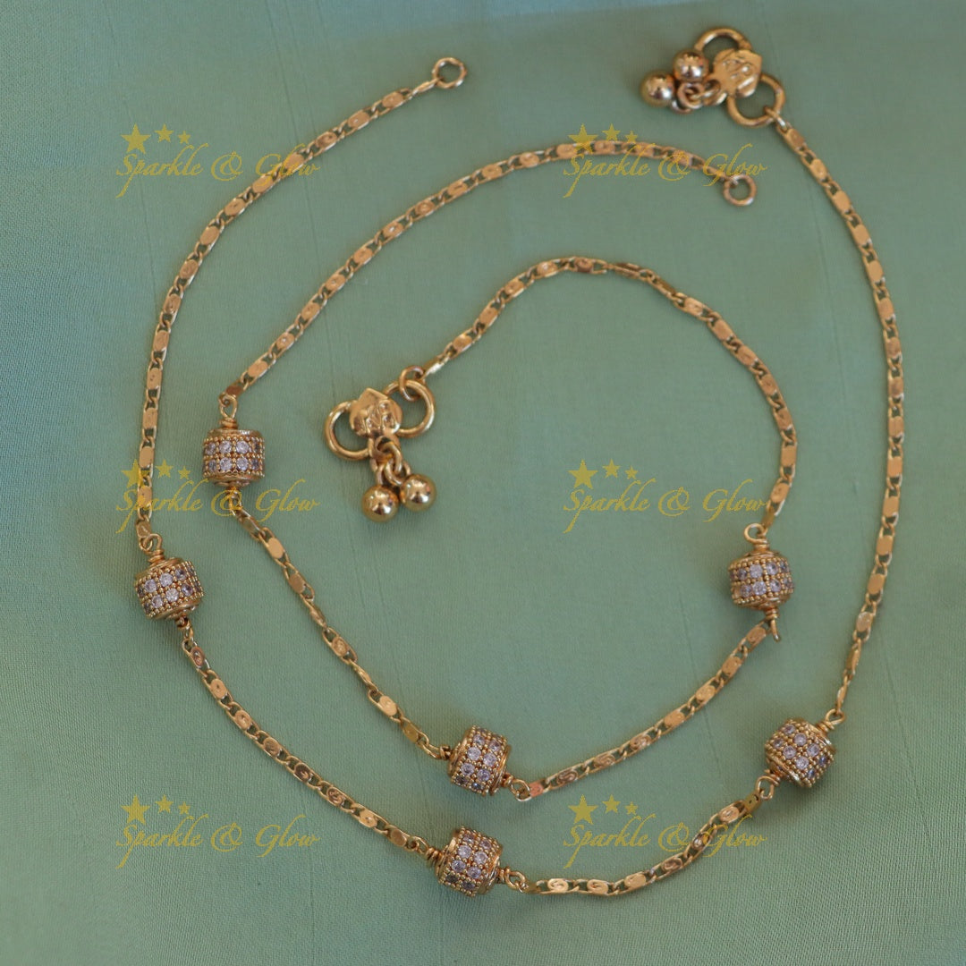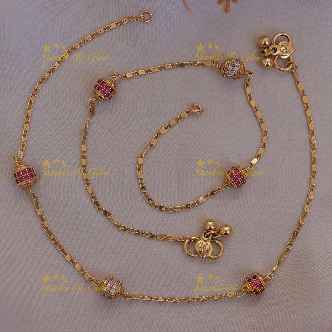 Enhance your elegance with our exquisite gold-plated anklet, meticulously crafted to add a touch of glamour to your festive celebrations. Whether you're attending a grand wedding or celebrating a joyful festival, this anklet is the perfect accessory to complement your ethnic attire.