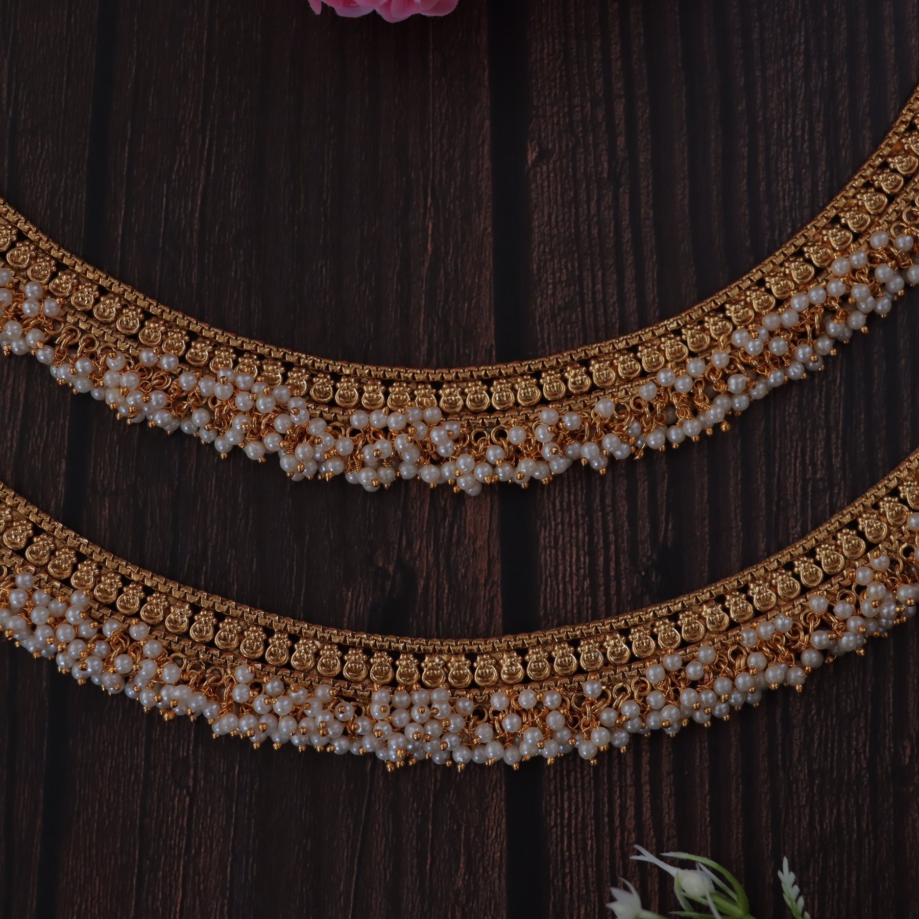 Make an unforgettable impression with these Gold Plated Floral Anklets, a testament to timeless elegance and Indian heritage.