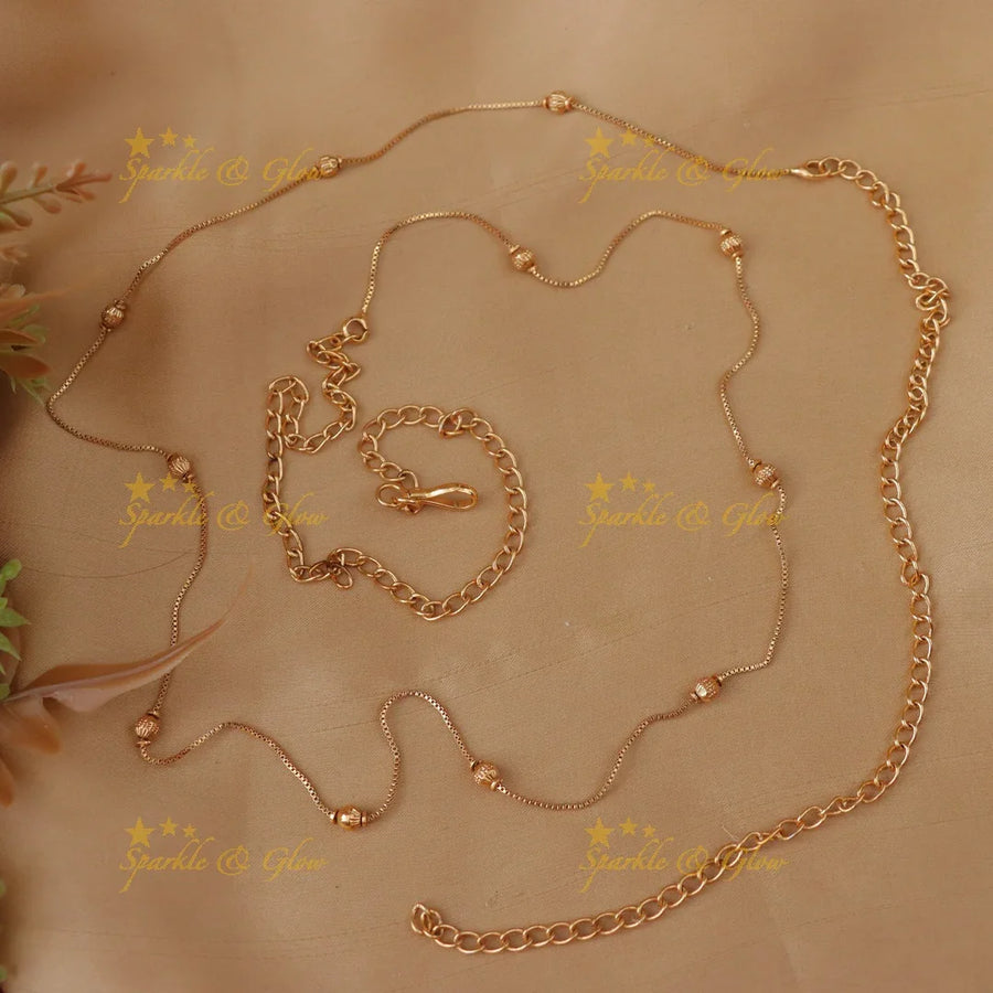 Designed to sit gracefully around your waist, this gold hipbelt is adorned with intricate details that capture the essence of tradition and glamour. Be it a grand wedding ceremony or a festive celebration, this piece seamlessly complements saris and lehengas, adding a spark of magnificence to your attire.