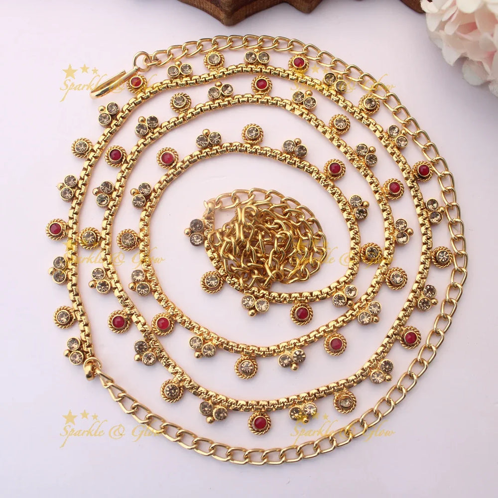 Inspired by the rich cultural heritage of South India, this necklace is meticulously crafted with a blend of red and green stones, symbolizing prosperity and harmony. The mango design, an embodiment of grace, seamlessly combines with floral motifs, creating a mesmerizing effect.