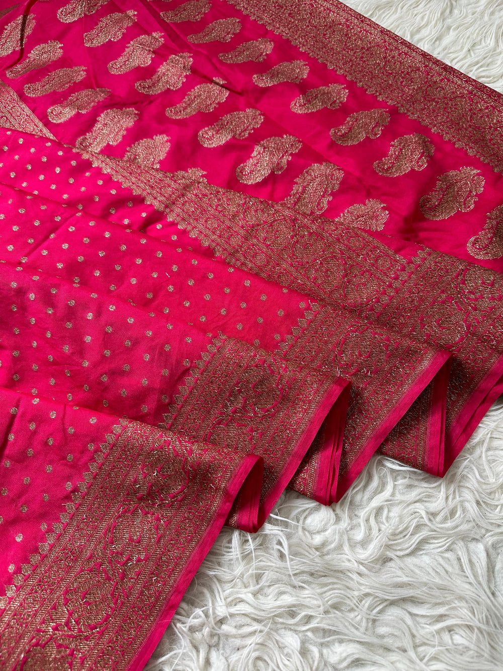 Discover the exquisite elegance of our Banarasi Georgette Saree from the Exclusive Bridal Collection. Crafted with precision and adorned with intricate patterns, this saree is a tribute to the rich cultural heritage of India. The luxurious fabric drapes beautifully, making it an ideal choice for brides seeking traditional yet contemporary elegance.