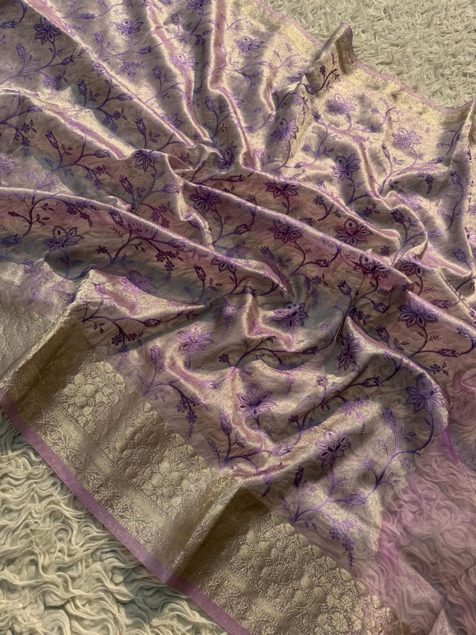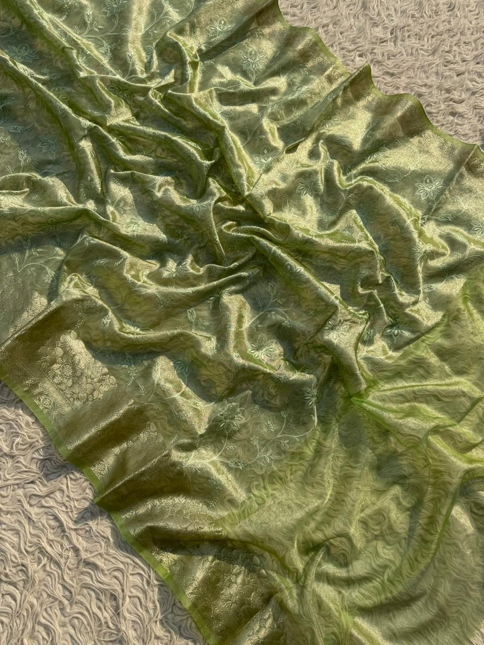Discover the unparalleled elegance of our Premium Tissue Banarasi Saree, perfect for making a statement at special occasions. This exquisite saree showcases traditional craftsmanship combined with modern design elements, making it an ideal choice for weddings, festivals, and other grand celebrations.