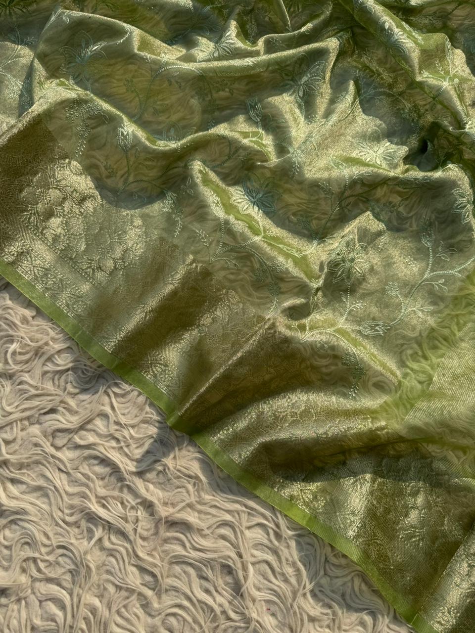 - Expertly woven using premium quality tissue fabric, known for its luxurious sheen and delicate texture.