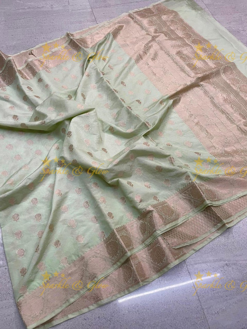 The saree is adorned with delicate motifs and a lustrous border that adds a touch of opulence. Its soft fabric ensures comfort, making it an ideal choice for long ceremonies or celebrations. Whether itβs a wedding, a festive gathering, or a special occasion, this saree guarantees to make you the center of attraction.