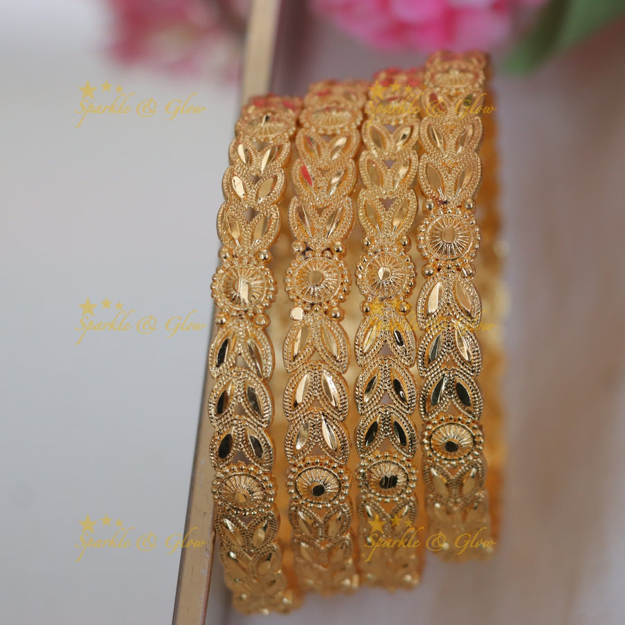 Discover the beauty and elegance of our Exquisite Floral Bangles, a new arrival perfect for weddings and festive occasions. Crafted intricately, these bangles are adorned with floral motifs that are sure to capture everyone's attention.