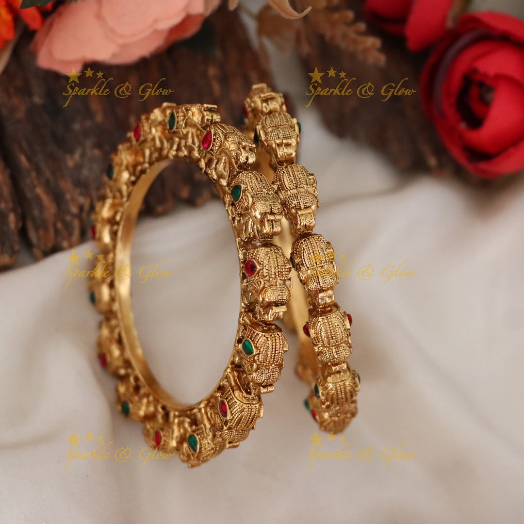 Elephant Motif Gold Bangles for Weddings & Festivities