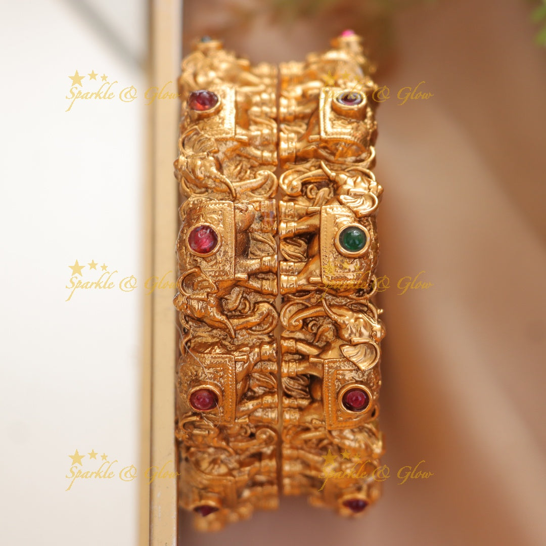 Embrace the beauty and artistry of Indian heritage with our Exquisite Elephant Gold Bangle—a piece that promises to be cherished for years to come.
