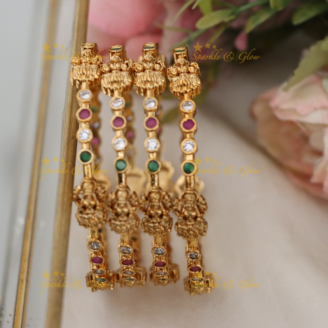 Our temple gold bangles are embellished with stunning stones that shimmer with every movement. The detailed carvings represent the rich heritage of temple jewelry, making them a perfect accessory for festivals, weddings, or any special occasion where you want to make a statement.