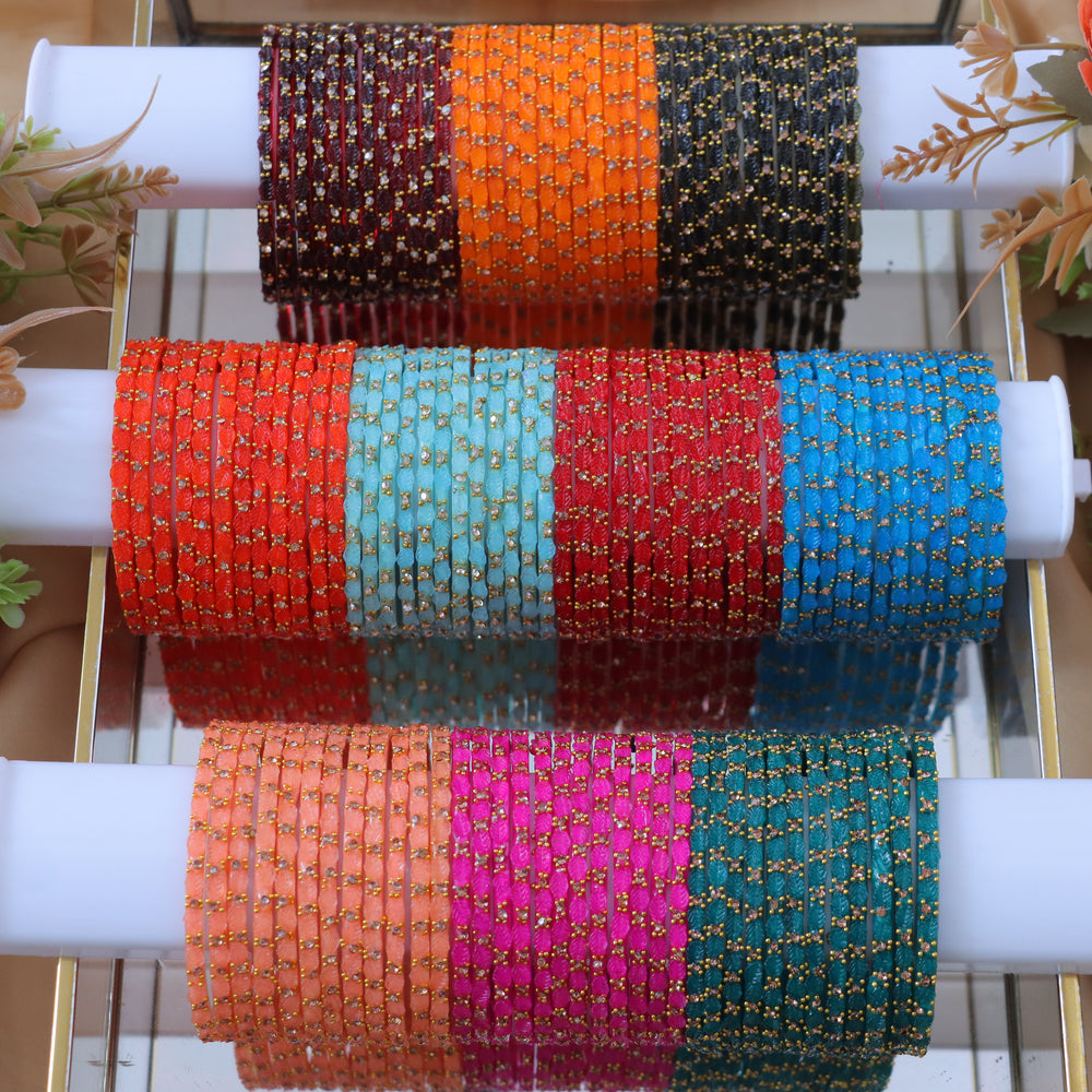 Golden color silk thread is wrapped around base bangles(plastic lightweight bangle), we have mentioned sizes. Will take upto 15 days(working days, holidays are not considered) to make it as its handmade, Can be custom made in any color