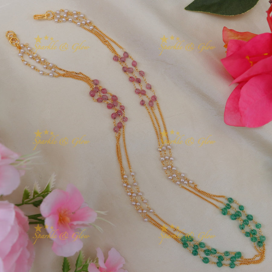 Explore our Beaded Necklaces Collection and indulge in the charm of Indian craftsmanship. Looking for more? We invite you to browse through our vast collection of Indian jewellery, including hip-belts, bangles, harams, and more.