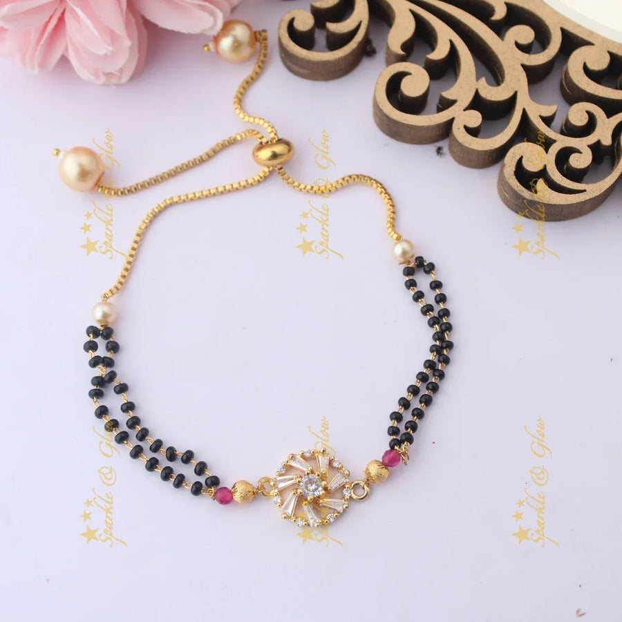 Adjustable Mangalsutra Bracelet with Circular CZ Charm