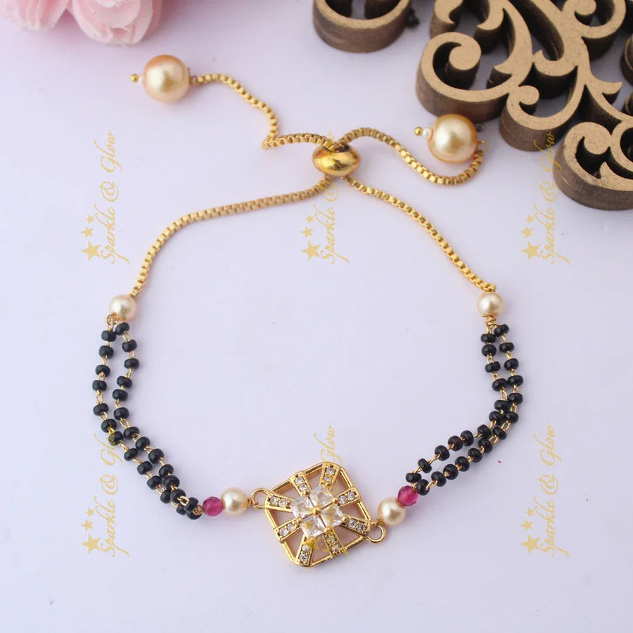Adjustable Mangalsutra Bracelet with Square CZ Pendant