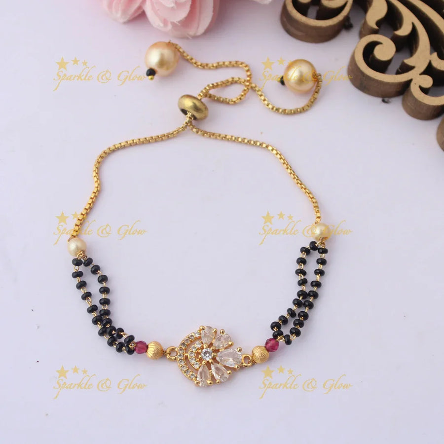 Elegant Adjustable Mangalsutra Bracelet with Square CZ Charm