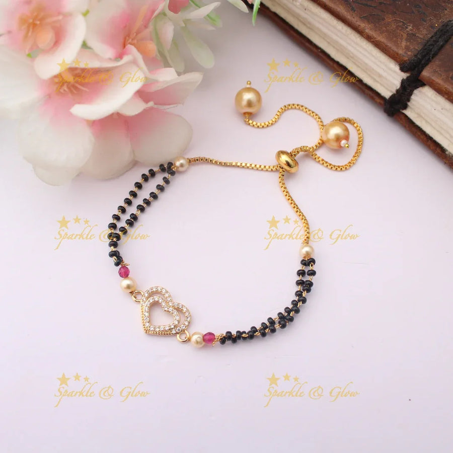 Stunning Adjustable Mangalsutra inspired Bracelet with Double Heart Charm