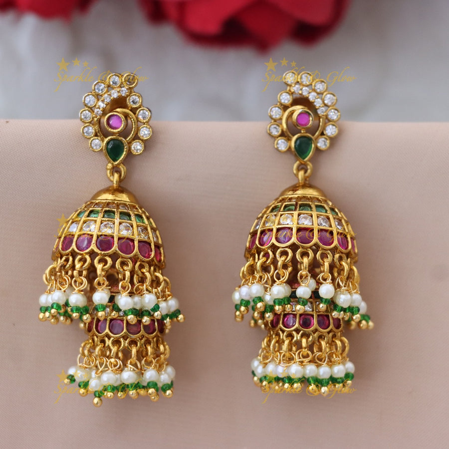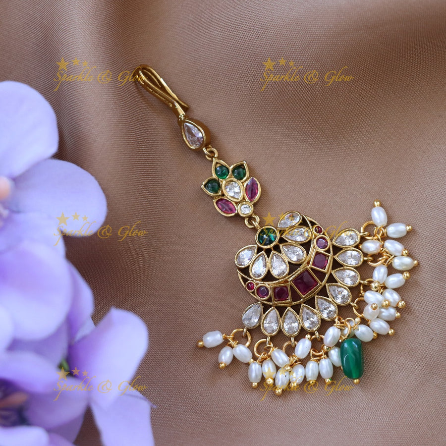 Step into the world of timeless beauty with our exquisite Kemp Earrings & Earchain Set. This meticulously crafted set is a celebration of traditional Indian craftsmanship, designed for those who appreciate the finer things in life. Featuring intricate kemp stones, the set radiates elegance and pays homage to the rich cultural heritage of India.
