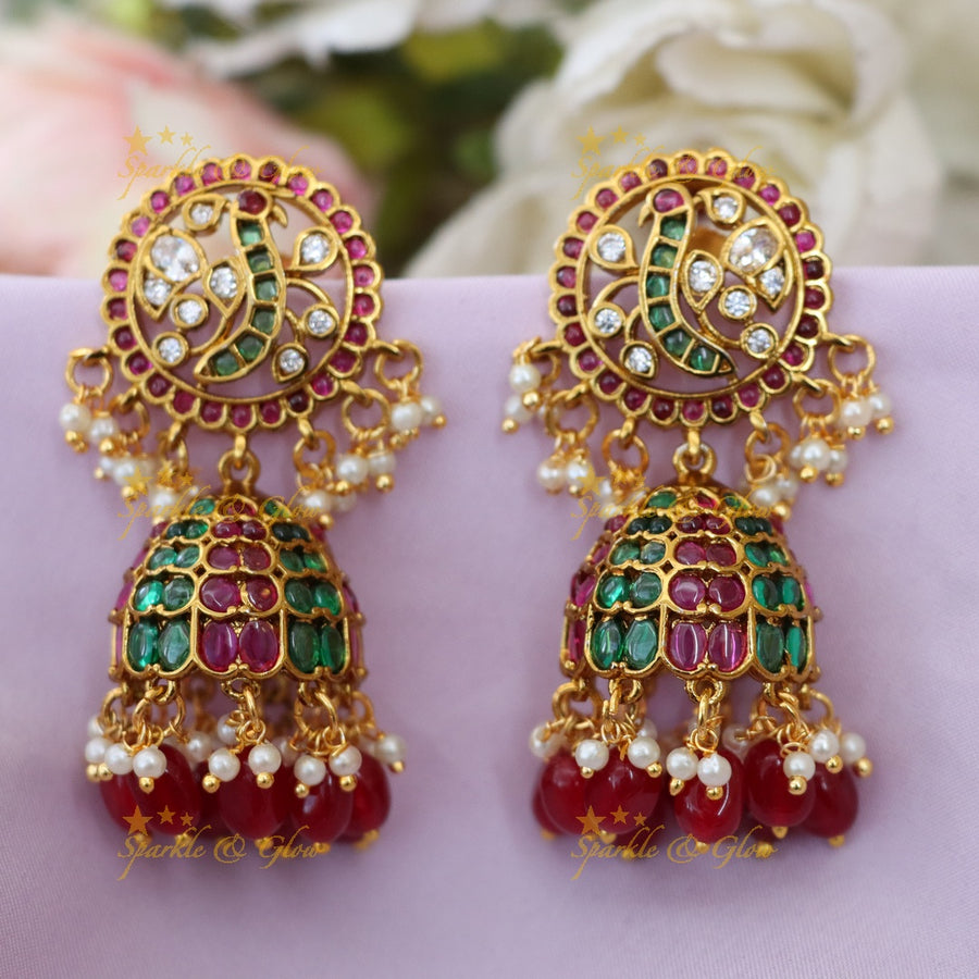 - πΈ The earrings feature a resplendent peacock motif, symbolic of grace and beauty, adorned with vibrant kemp stones that capture the essence of regal splendor.