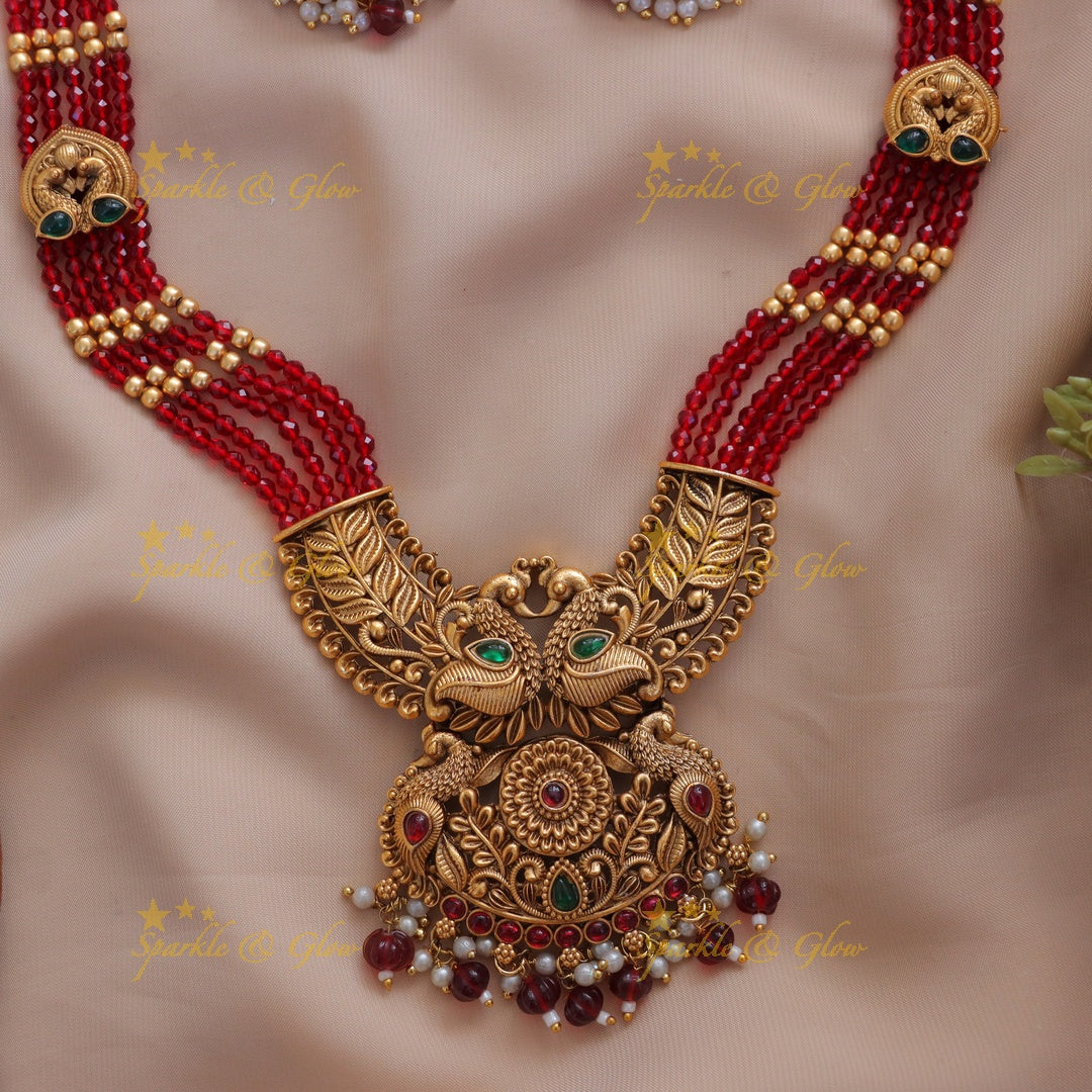 Meta Description: Discover our Exquisite Peacock Floral Pendant Beaded Necklace, ideal for festivals and weddings. Shop luxurious beaded design with peacock motif.