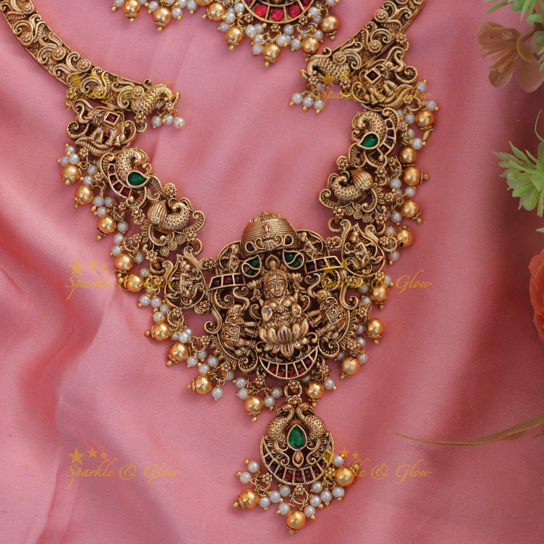 Exquisite Lakshmi Peacock Necklace Set - Sparkle & Glow