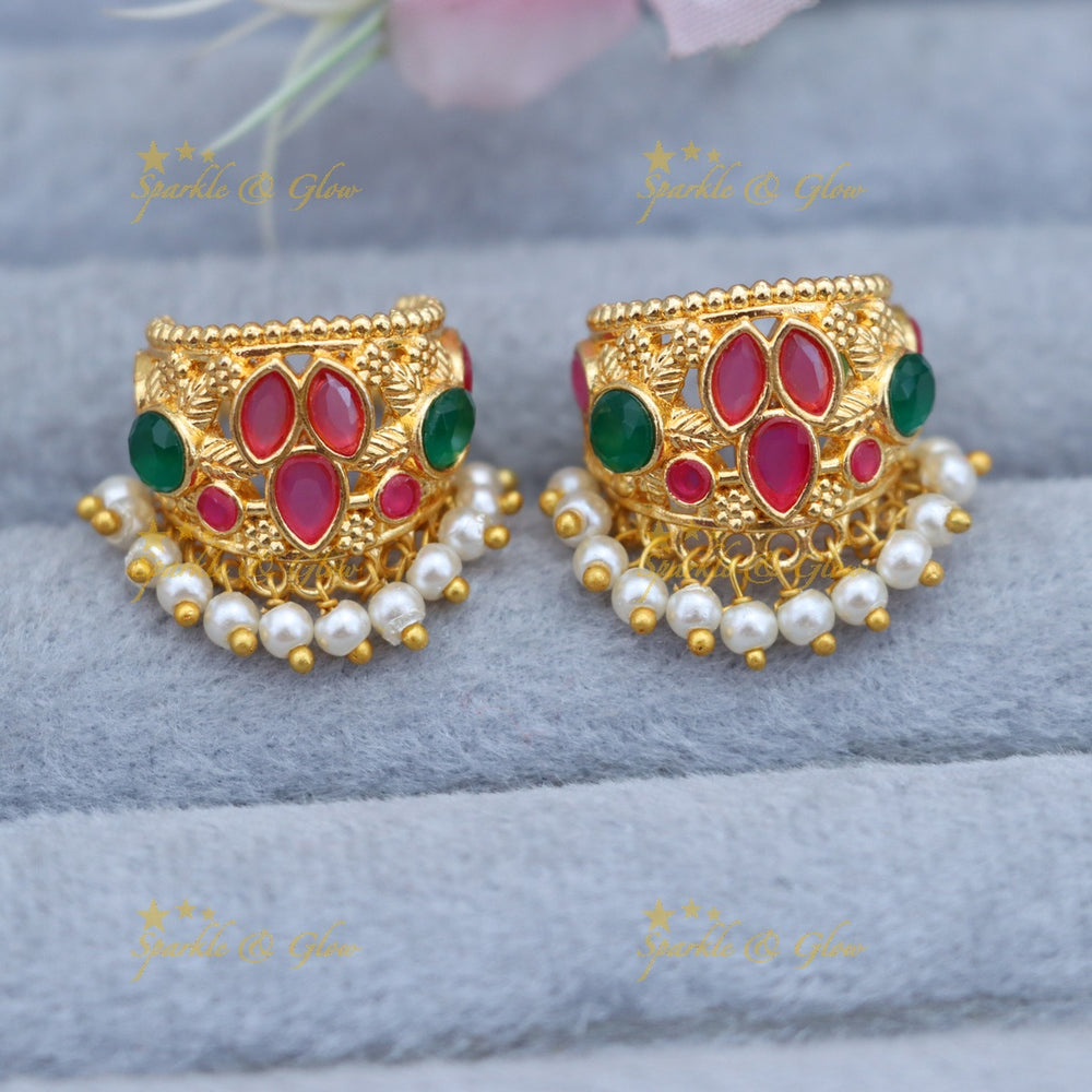 Large bugadis with pearls or jadau work for bridal edits and when making a statement.