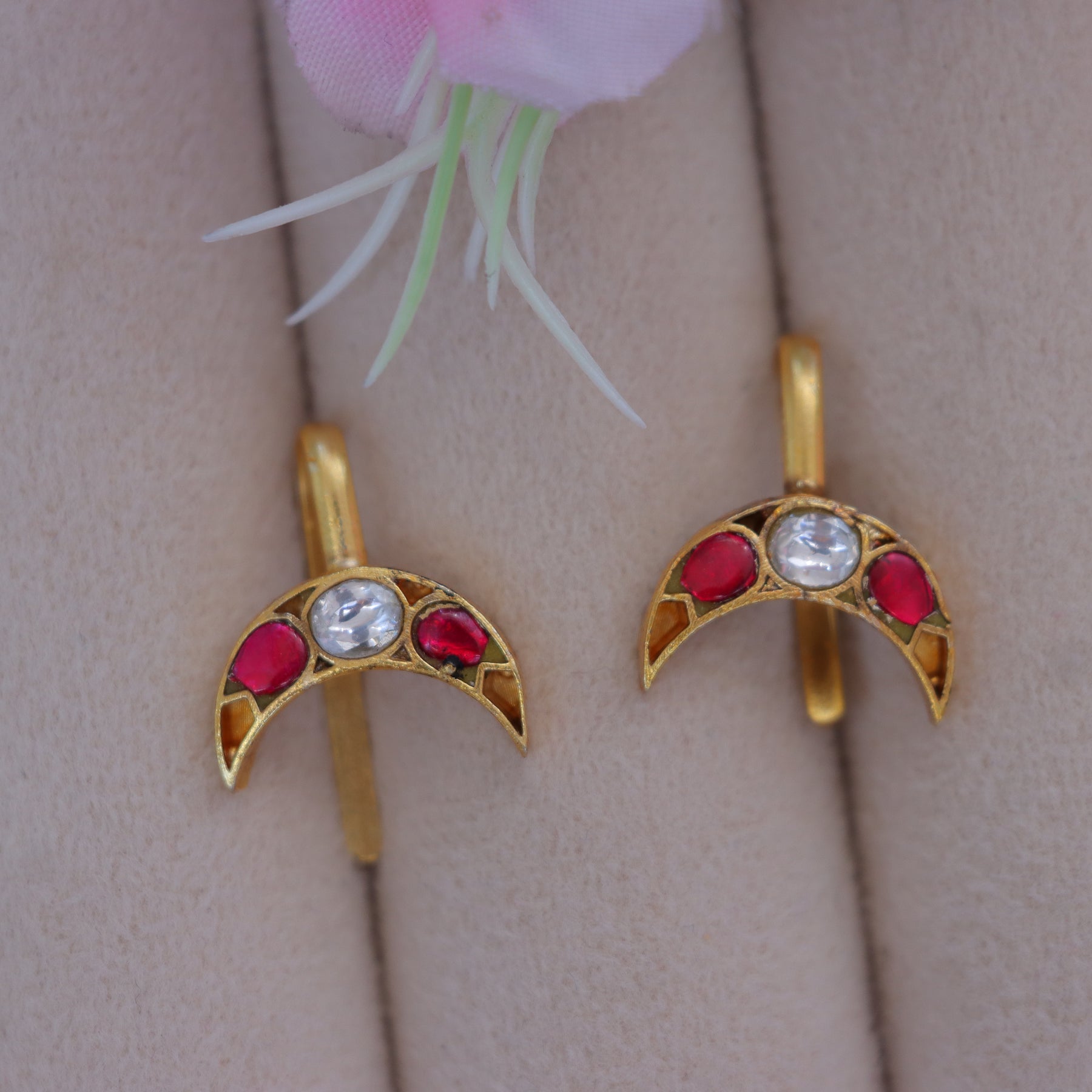 Each piece is handcrafted by skilled artisans, using traditional techniques that have been passed down through generations. The graceful curves and vibrant shine of the Jadau technique give these earrings their unique charm, perfect for weddings, festivals, and any special occasions.