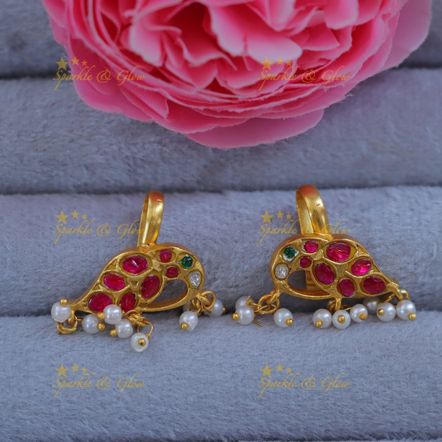 Discover the brilliance of Indian craftsmanship with our exquisite Earrings Collection. Each piece, from our intricately carved Lakshmi jhumakas with pearl drops to our Real Jadau Kundan Lotus Jhumukas in regal Red and Green hues, is designed to offer an unparalleled blend of tradition and modernity. Our collection features a variety of designs, from the elegance of antique Lakshmi Jhumkas to the flamboyance of peacock studded Lakshmi carved heavy jhumkas and kemp flower studded bridal Jhumukas.
