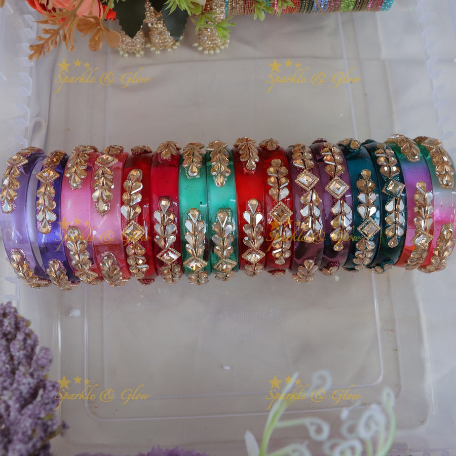 Exquisite Leaf Motif Glass Bangles Collection- Combo