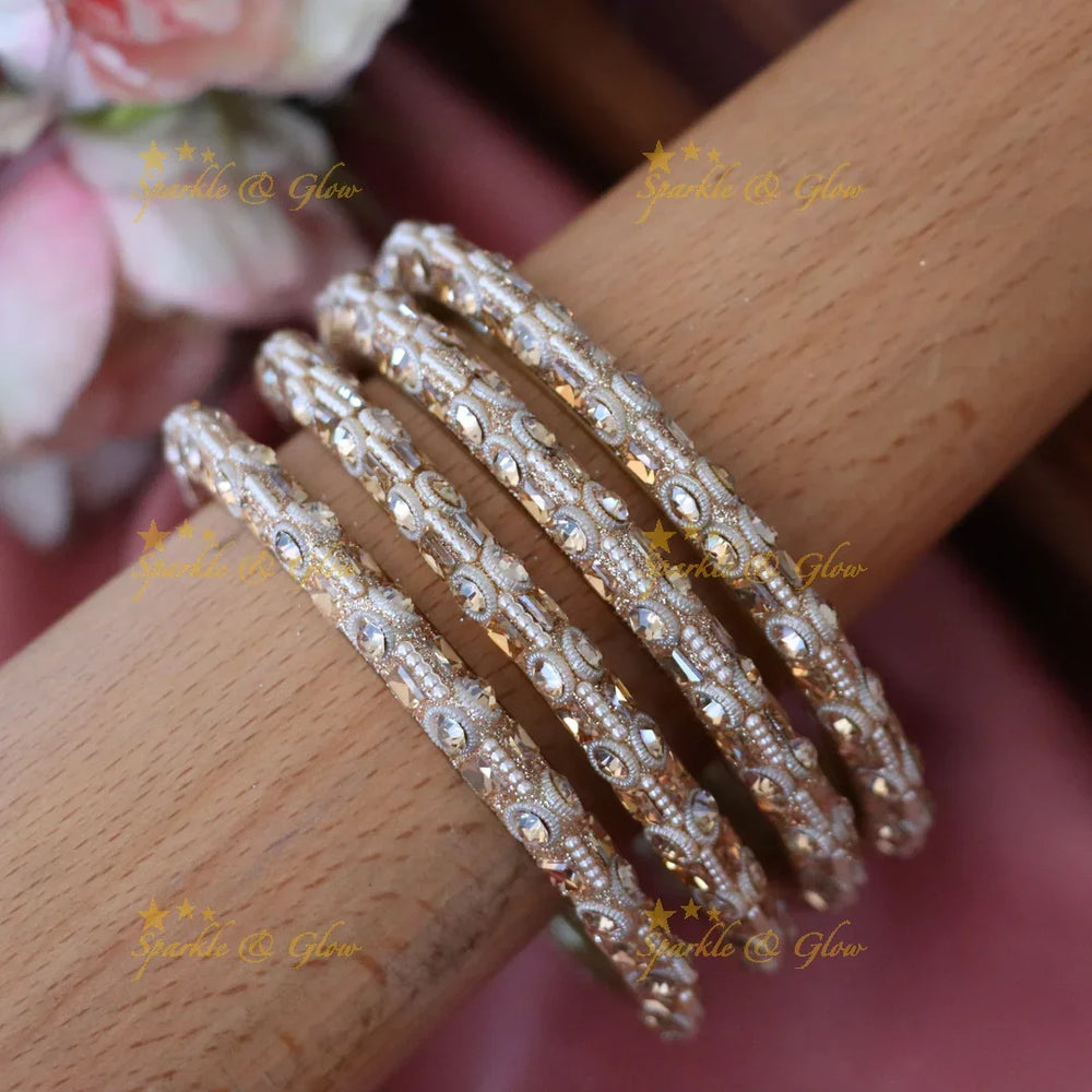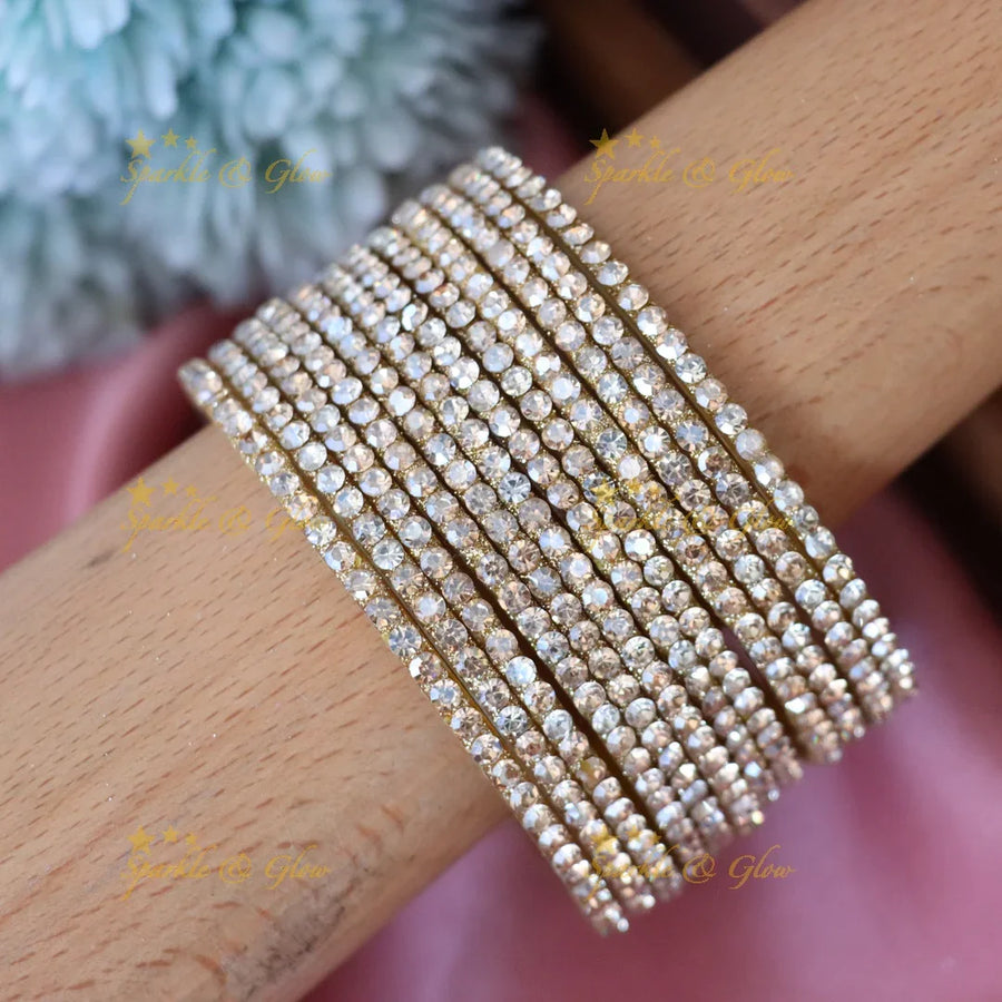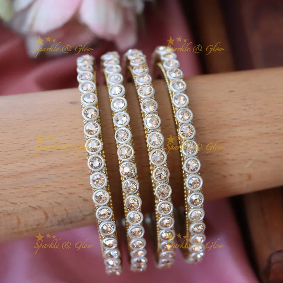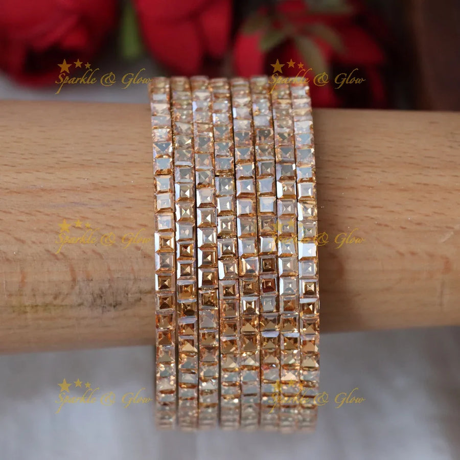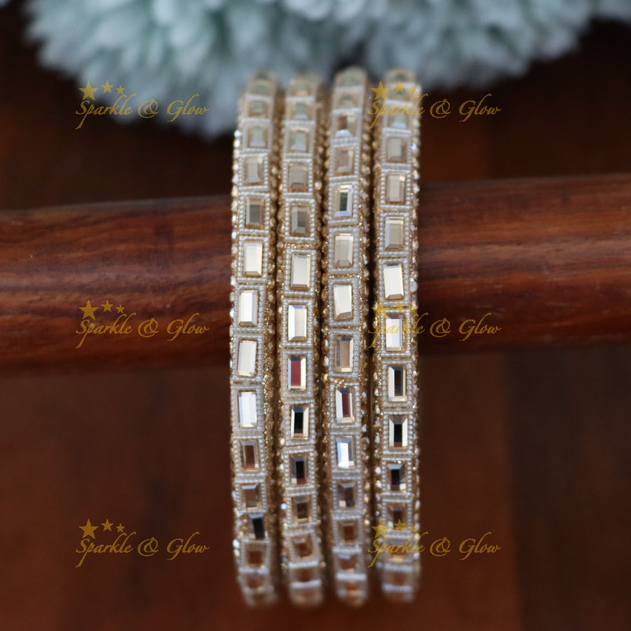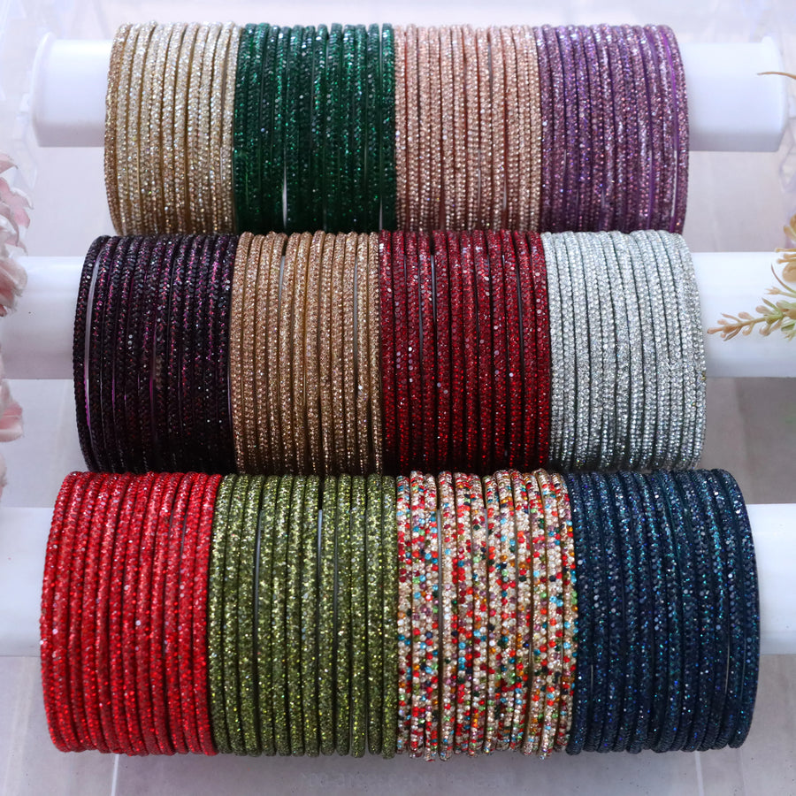 Bask in the radiance of our stunning Glass Bangles Collection, an exquisite assemblage of Indian imitation jewellery. Each piece in this collection is an epitome of grace and elegance, intricately designed with beautiful motifs and bedazzling colors. The shimmering gold dots on the bangles add a touch of festivity, making them perfect for any celebratory occasion.