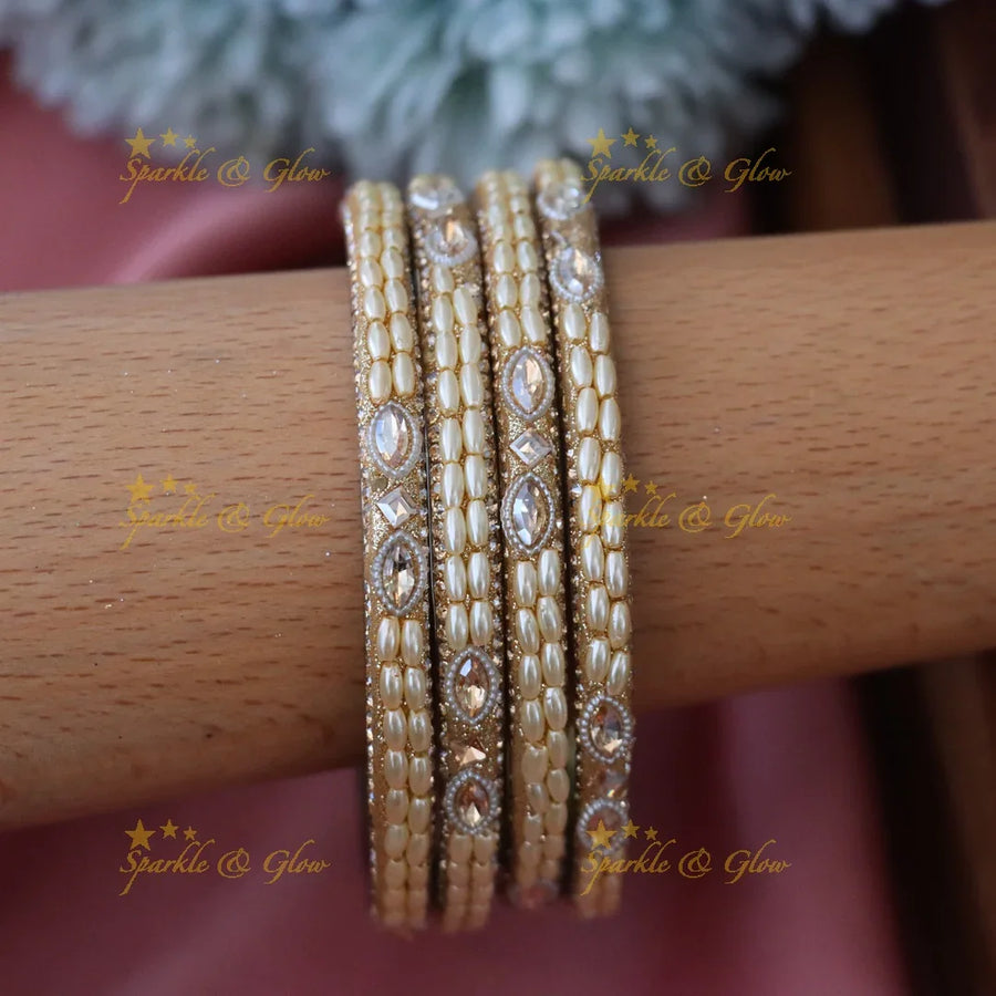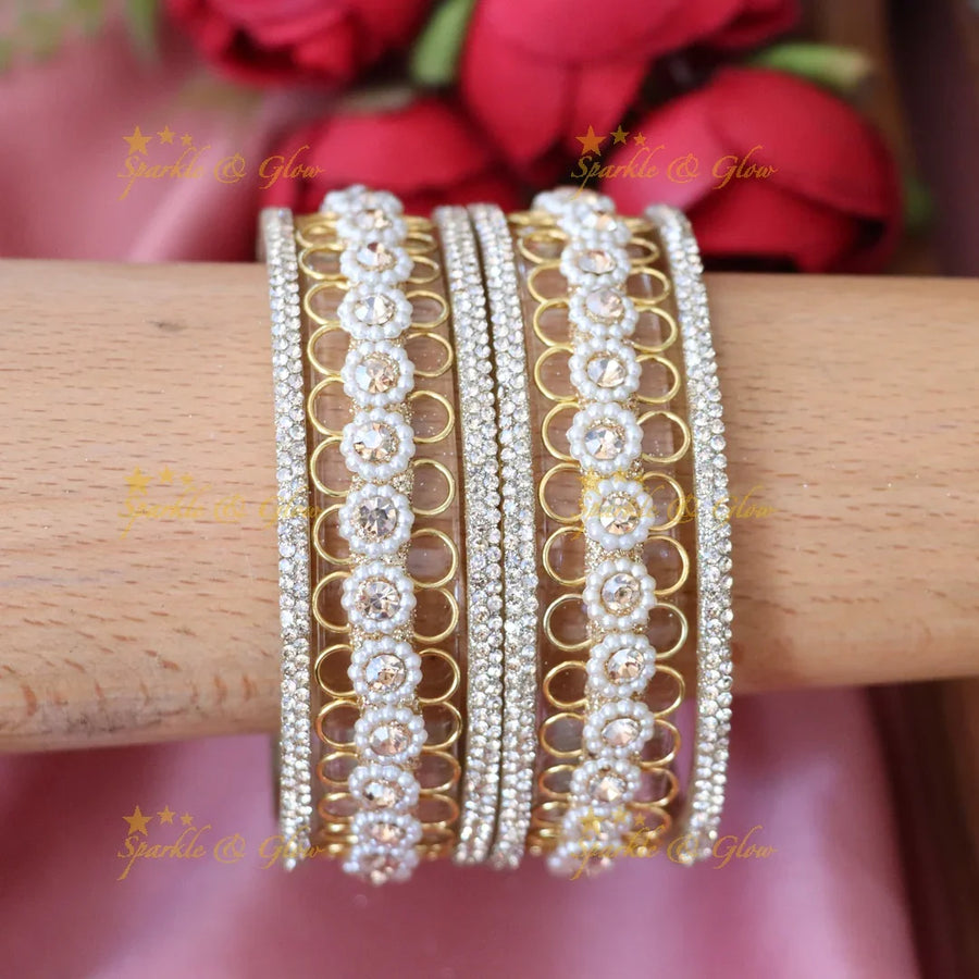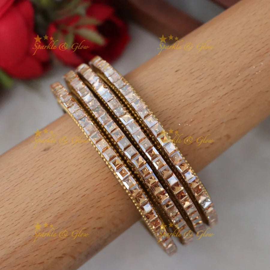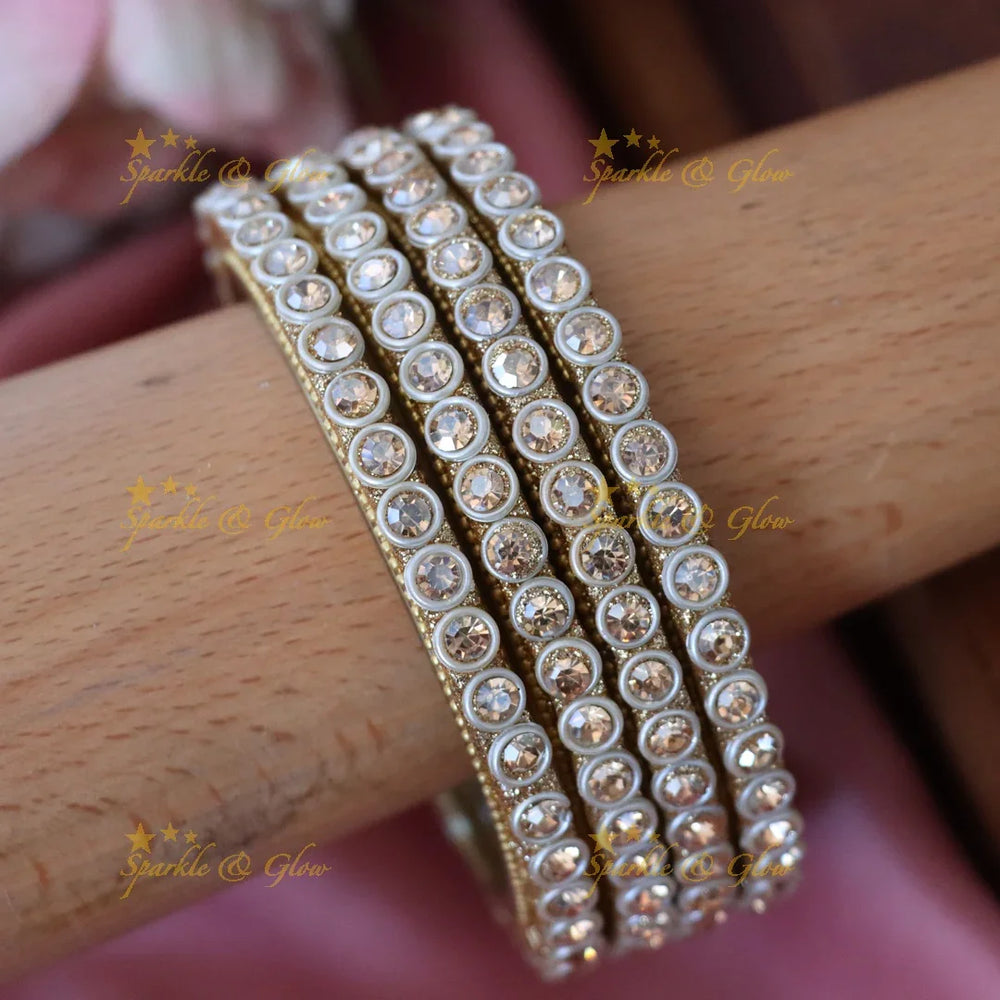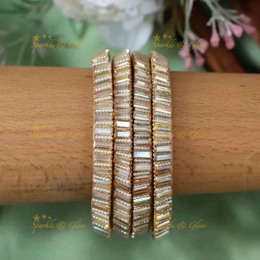 Bask in the radiance of our stunning Glass Bangles Collection, an exquisite assemblage of Indian imitation jewellery. Each piece in this collection is an epitome of grace and elegance, intricately designed with beautiful motifs and bedazzling colors. The shimmering gold dots on the bangles add a touch of festivity, making them perfect for any celebratory occasion.