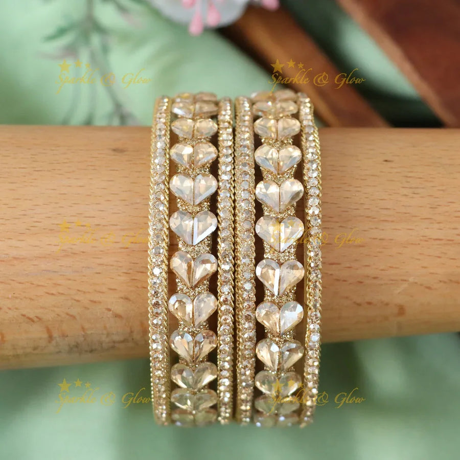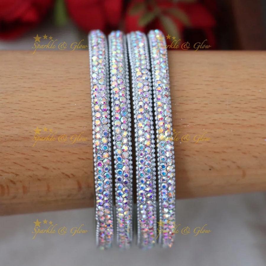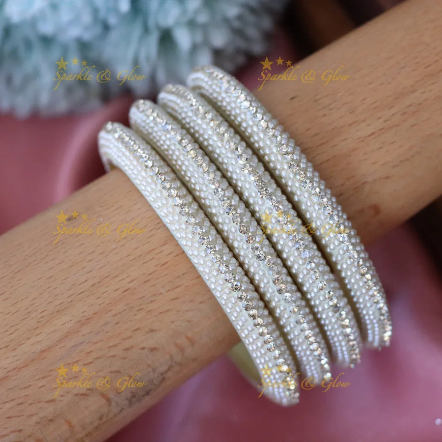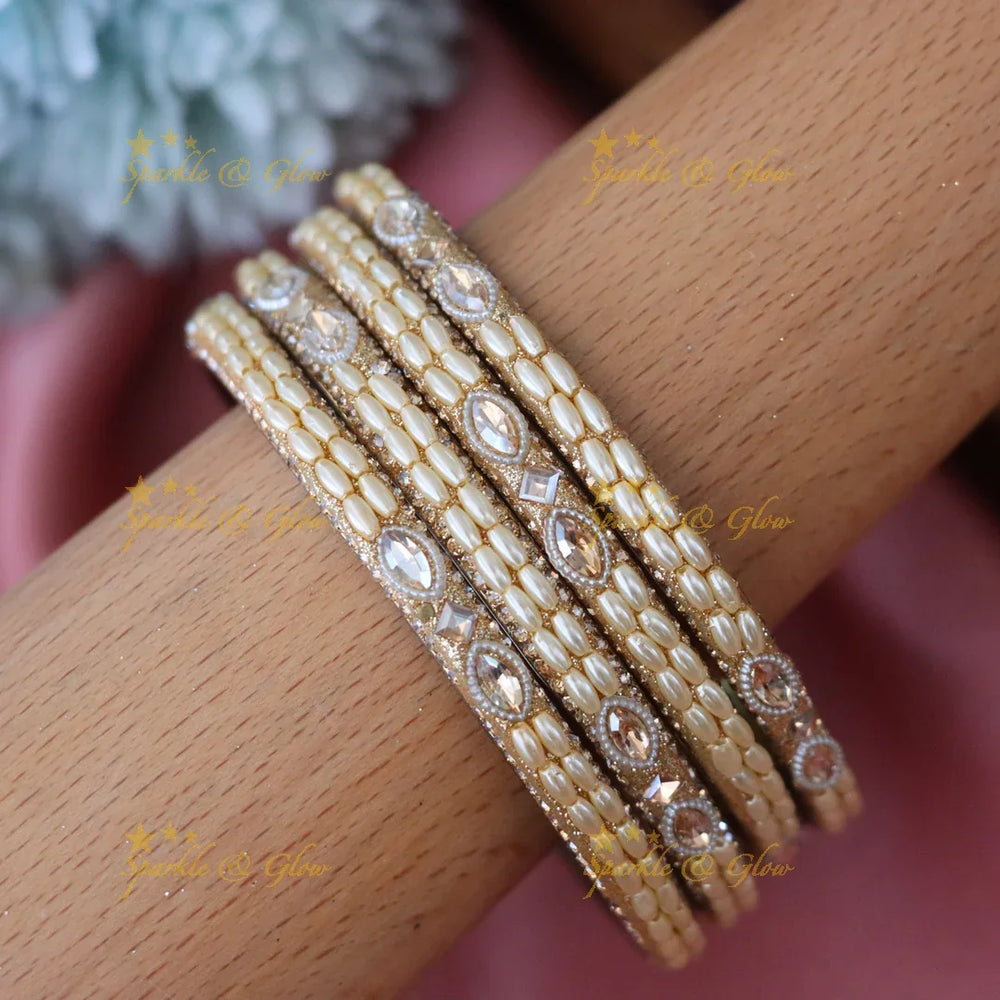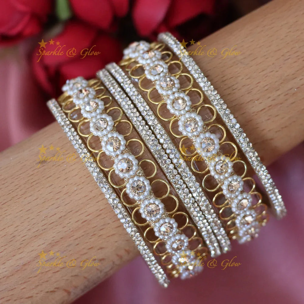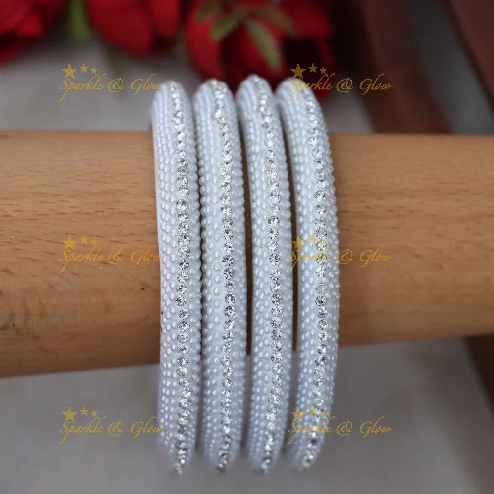 Bask in the radiance of our stunning Glass Bangles Collection, an exquisite assemblage of Indian imitation jewellery. Each piece in this collection is an epitome of grace and elegance, intricately designed with beautiful motifs and bedazzling colors. The shimmering gold dots on the bangles add a touch of festivity, making them perfect for any celebratory occasion.