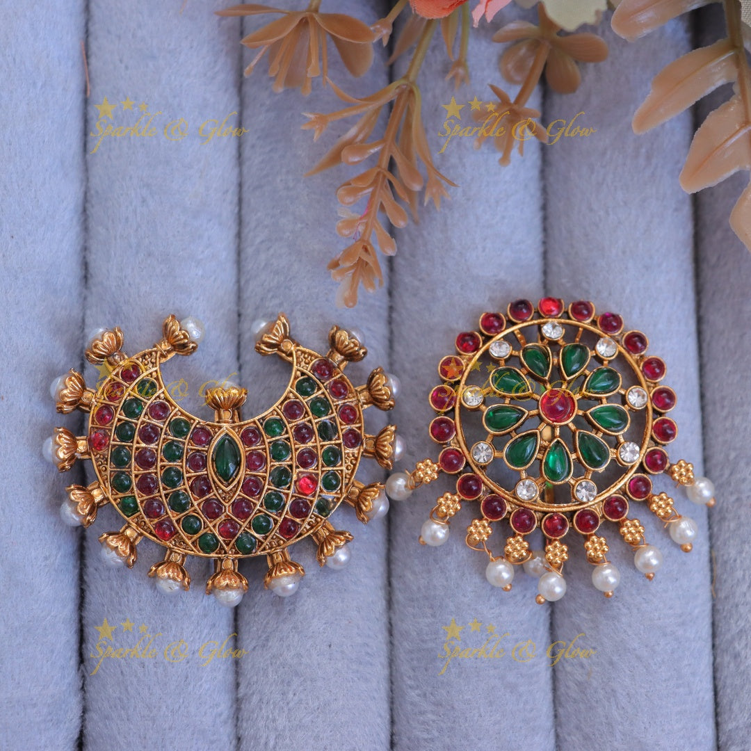 Exquisite Design: The design boasts charming floral motifs interspersed with lustrous pearls that shimmer with elegance. Crafted with precision, the accessory showcases intricate details that embody the essence of Indian artistry. The vibrant colors of red, green, and gold create a mesmerizing visual that complements any hair color.